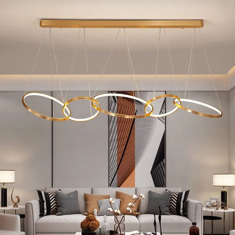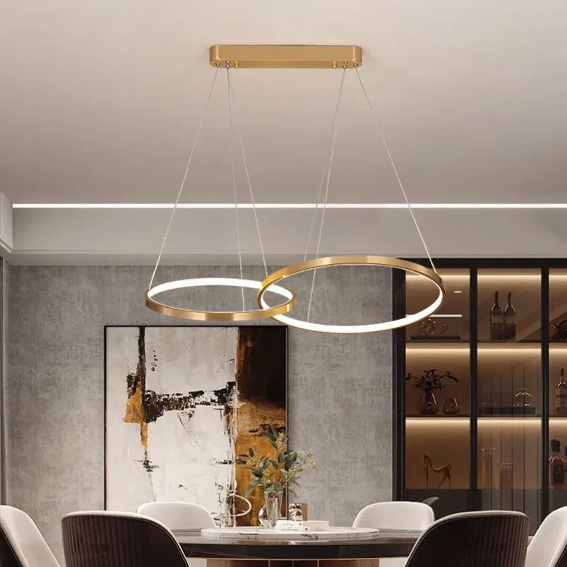 Современные светодиодные люстры с золотыми кольцами, декоративный светодиодный светильник для гостиной, столовой, лампа для спальни, подвесные осветительные приборы, освещение