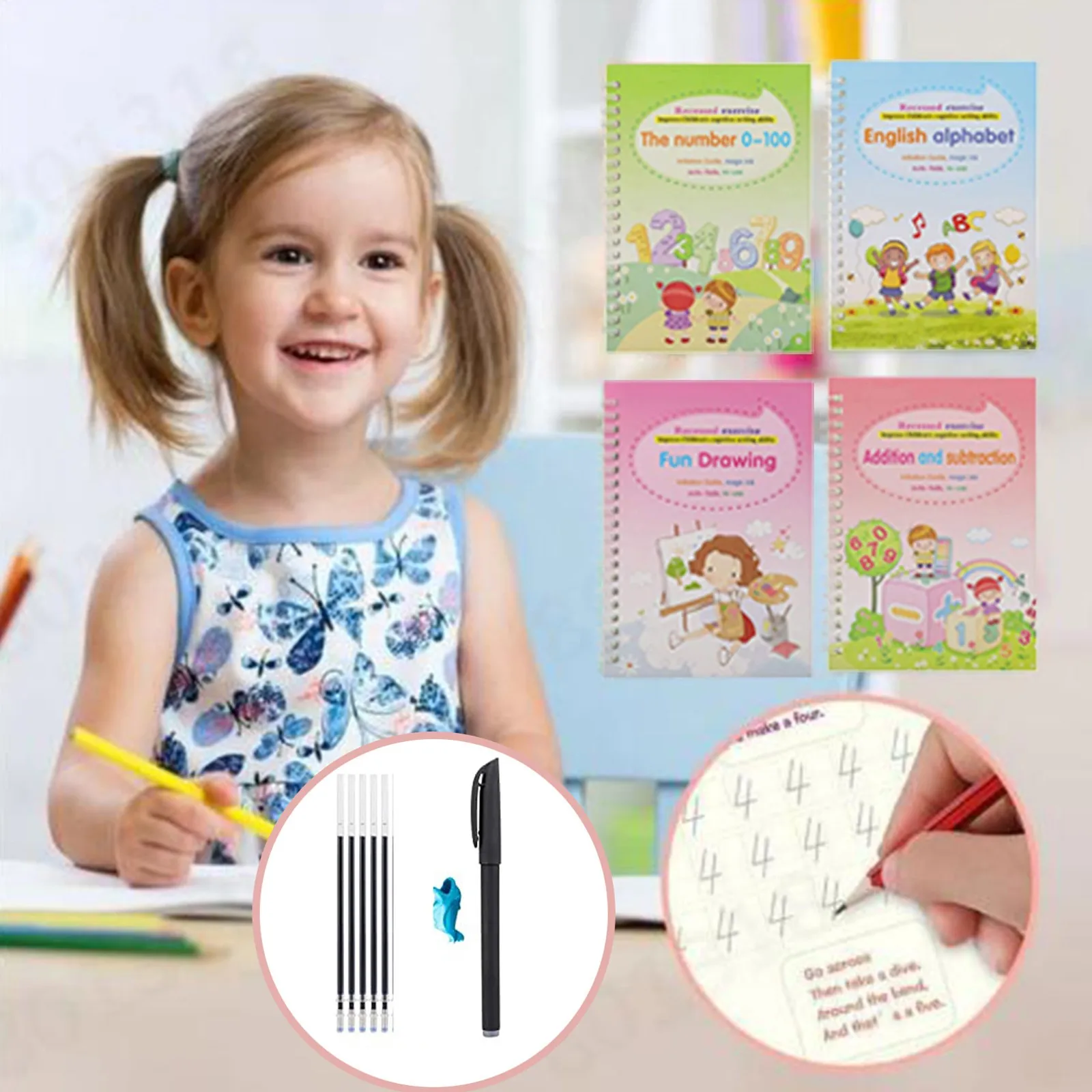 Волшебная каллиграфия, многоразовая тетрадь для письма, 4 шт., 1 ручка, 1 держатель для ручки, 5 стержней, 10 мл, 4 книжки, многоразовая тетрадь для каллиграфии