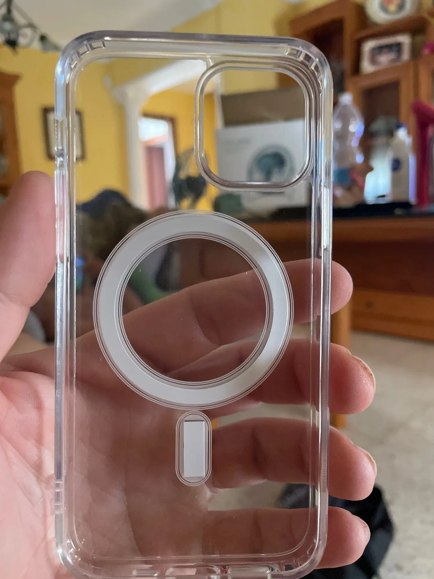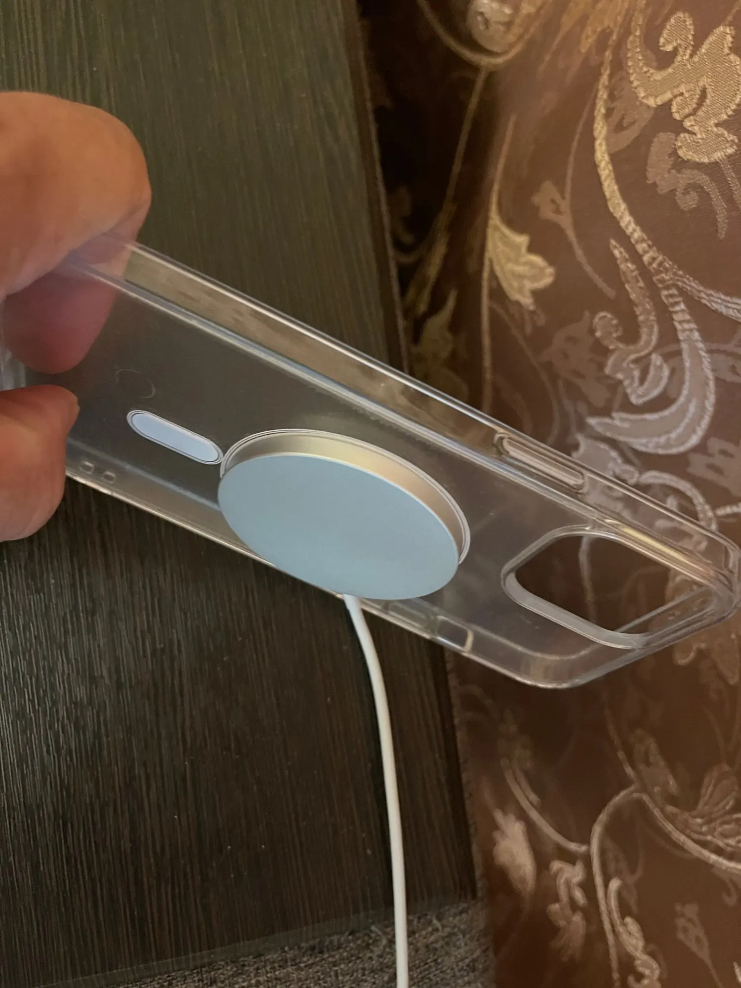 Отличный продукт, но немного отличается от оригинала, потому что Оригинальный чехол имеет белый круг немного тоньше, чем это. Не Протестировано MagSafe