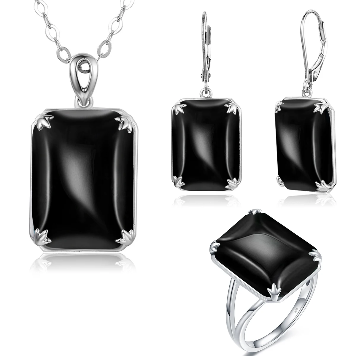 Бренд: Szjinao Тип камня: синтетический черный оникс Форма камня: прямоугольник Доступные Размеры колец: американский размер #5 , #6 , #7 , #8 , #9 , #10 Тип металла: Настоящее серебро 925 пробы Цвет металла: серебристый/золотой Упаковка: 1 * Серебряная полировальная ткань, 1 * Изысканная Подарочная коробка, 1 * Кольцо с драгоценным камнем 1 * пара драгоценных камней серьги 1 * кулон с драгоценным камнем
