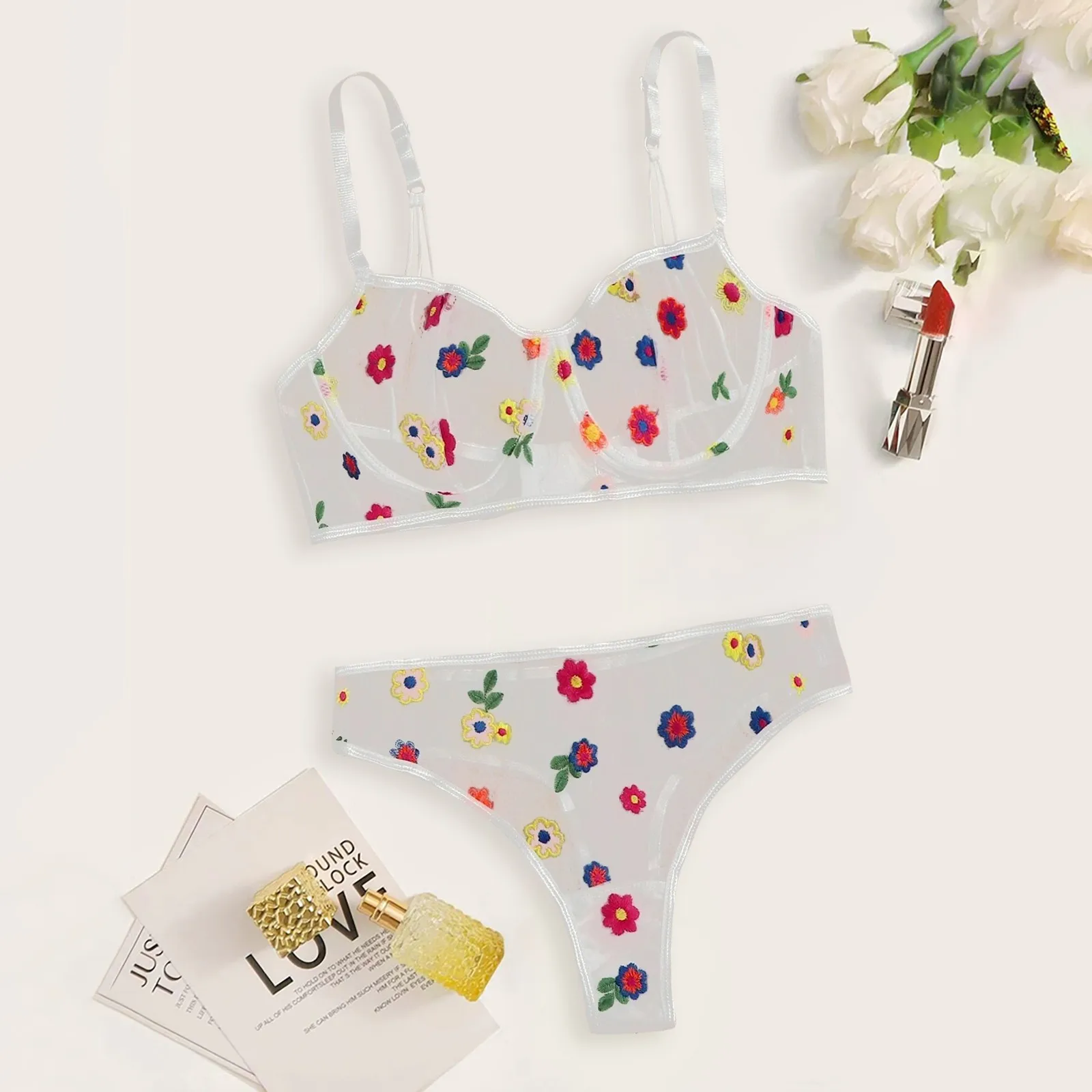 Экзотические комплекты с цветочной вышивкой, женское нижнее белье, ...