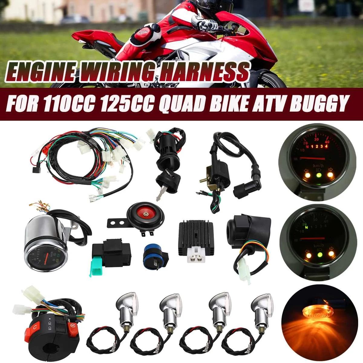Полный электрический стартер мотоцикла, 50 куб. См, 110 куб. См, 125 куб. См, жгут проводов CDI, наборы ткацких станков для внедорожников, питбайков, квадроциклов, карт