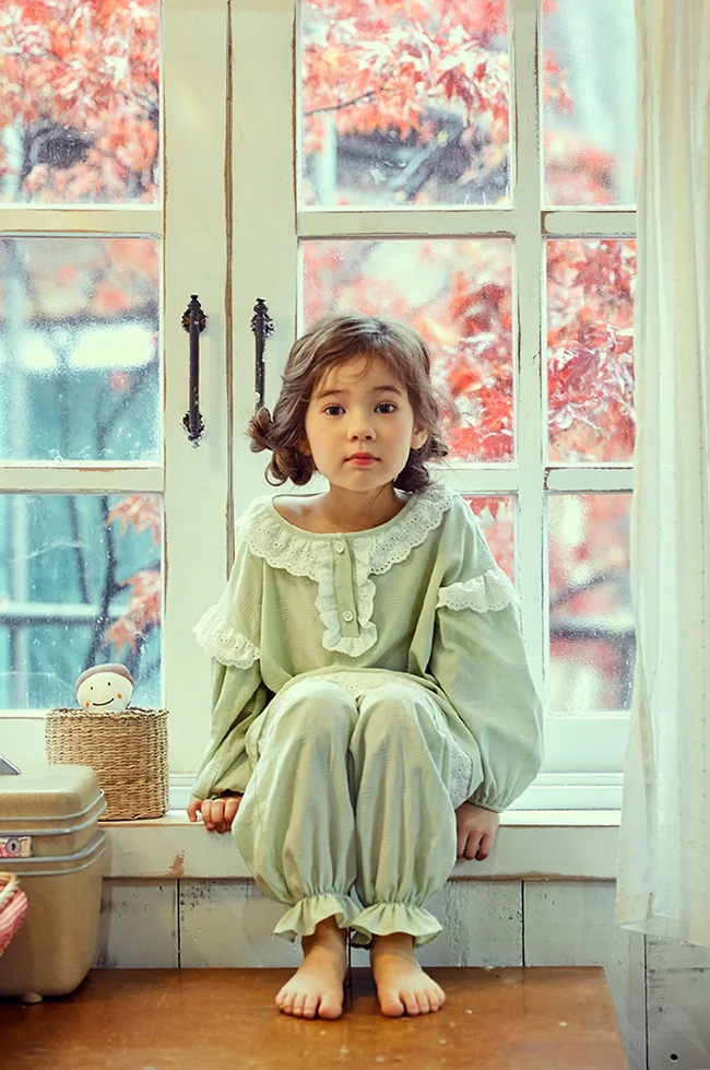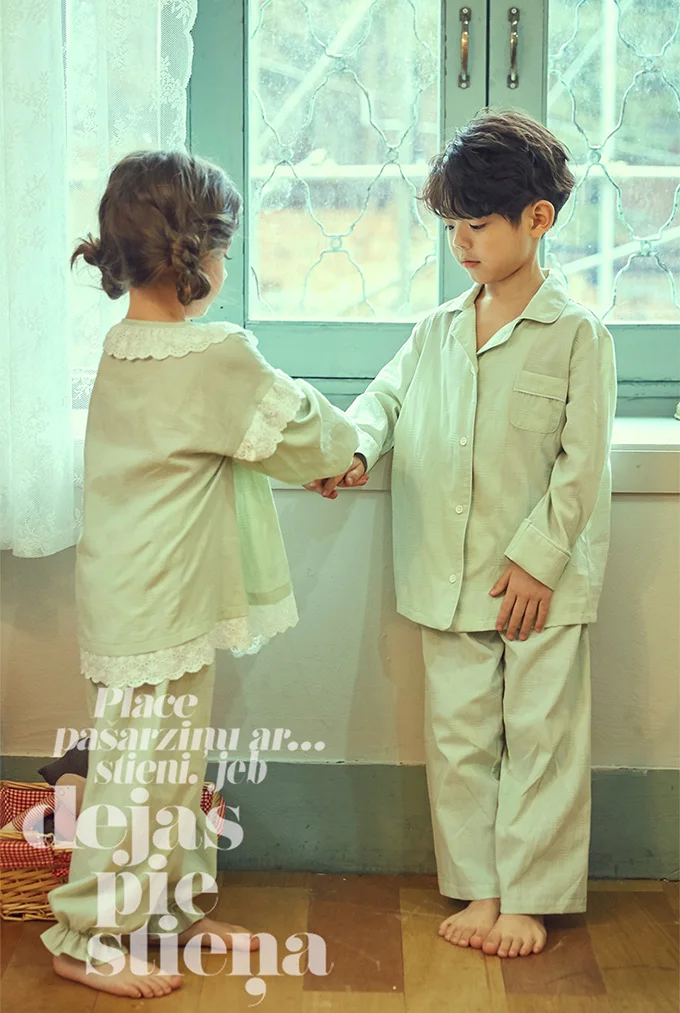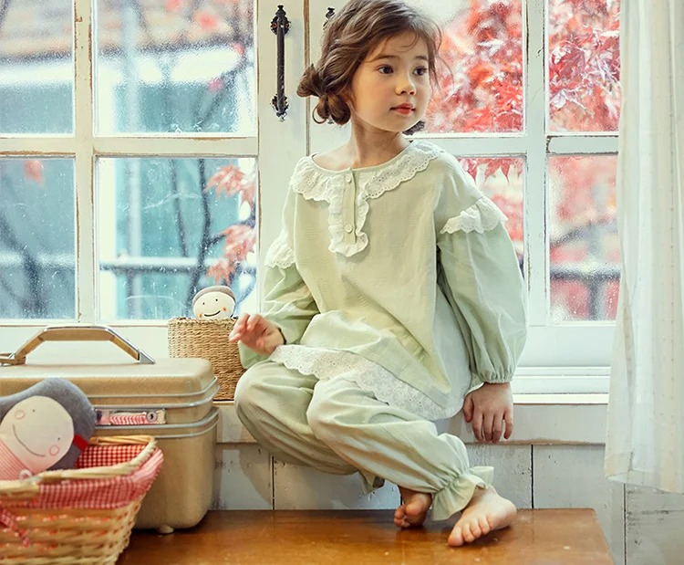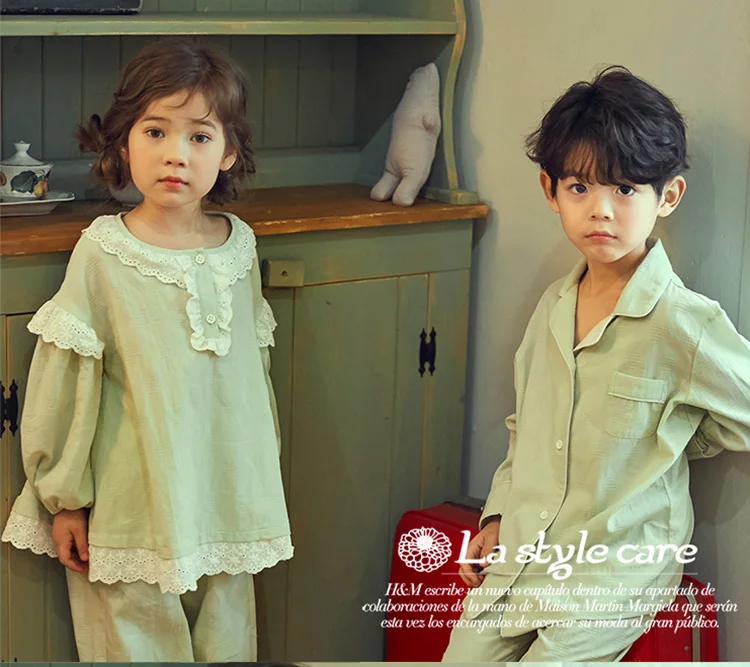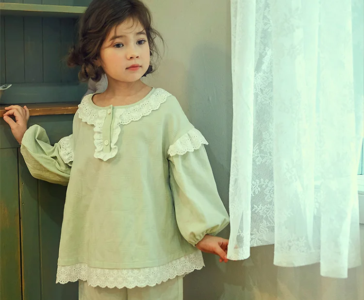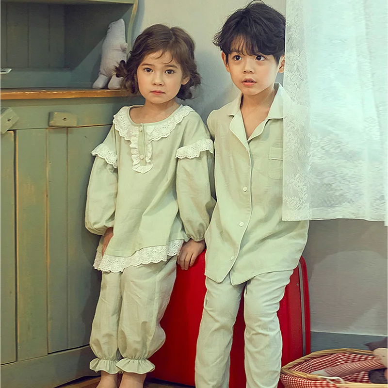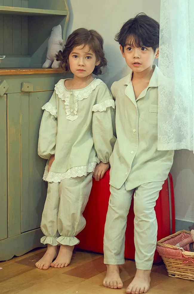 Милые детские хлопковые Пижамные комплекты мятно-зеленого цвета. Пижамный комплект с рюшами для маленьких мальчиков и девочек, одежда для сна, детская одежда