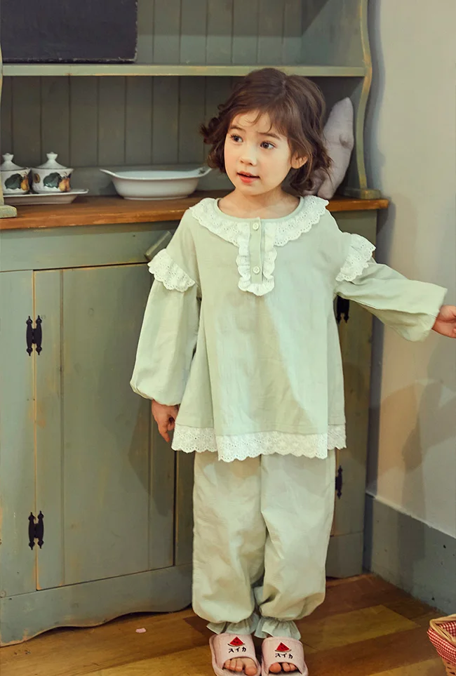 Симпатичные Детские хлопковые мятно-зеленые пижамные комплекты. Комплект пижам с рюшами для малышей для девочек и мальчиков, домашняя одежда для сна. Детская одежда
