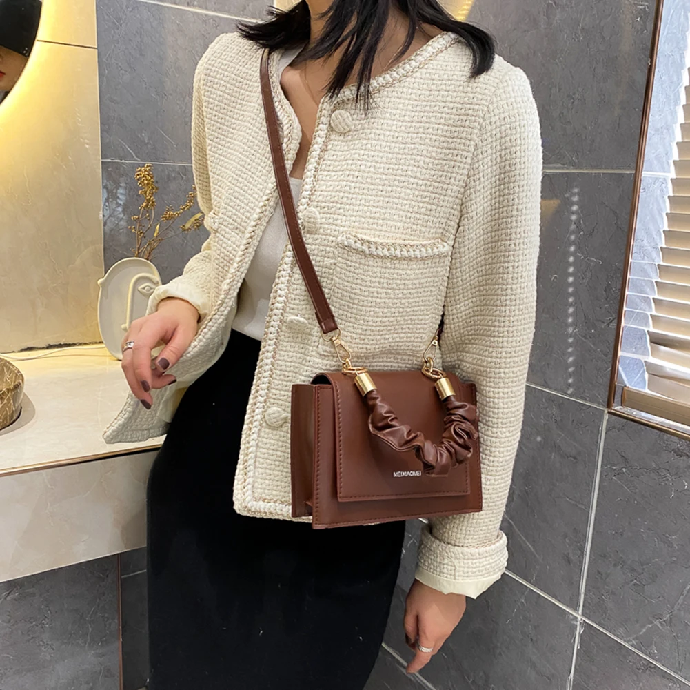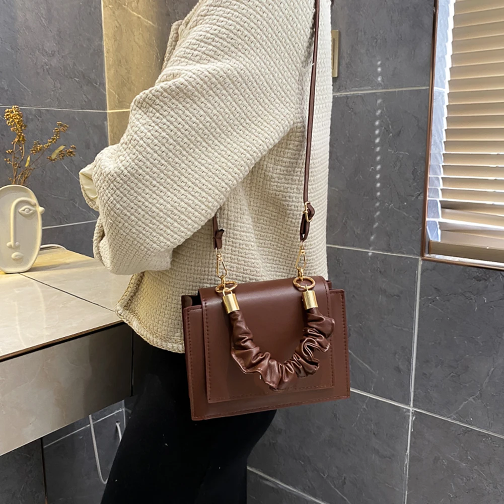 Модная плиссированная сумка через плечо из искусственной кожи с ручкой, женские портативные одноцветные сумки через плечо