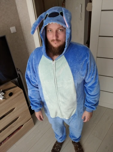 Шикарный кенгуруми! Он реально большой, что очень радует, т.к. заказывала своему мужу, у которого российский размер 56, рост 187. Боялась, что будет маломер. Удивила молния на животике, т.к. ее можно открывать и снизу и сверху, у моего Стича обычная. Упакован хорошо в полиэтиленовый пакет с бегунком + плотный непроницаемый пакет. Доставка раньше срока. Продавца очень рекомендую.