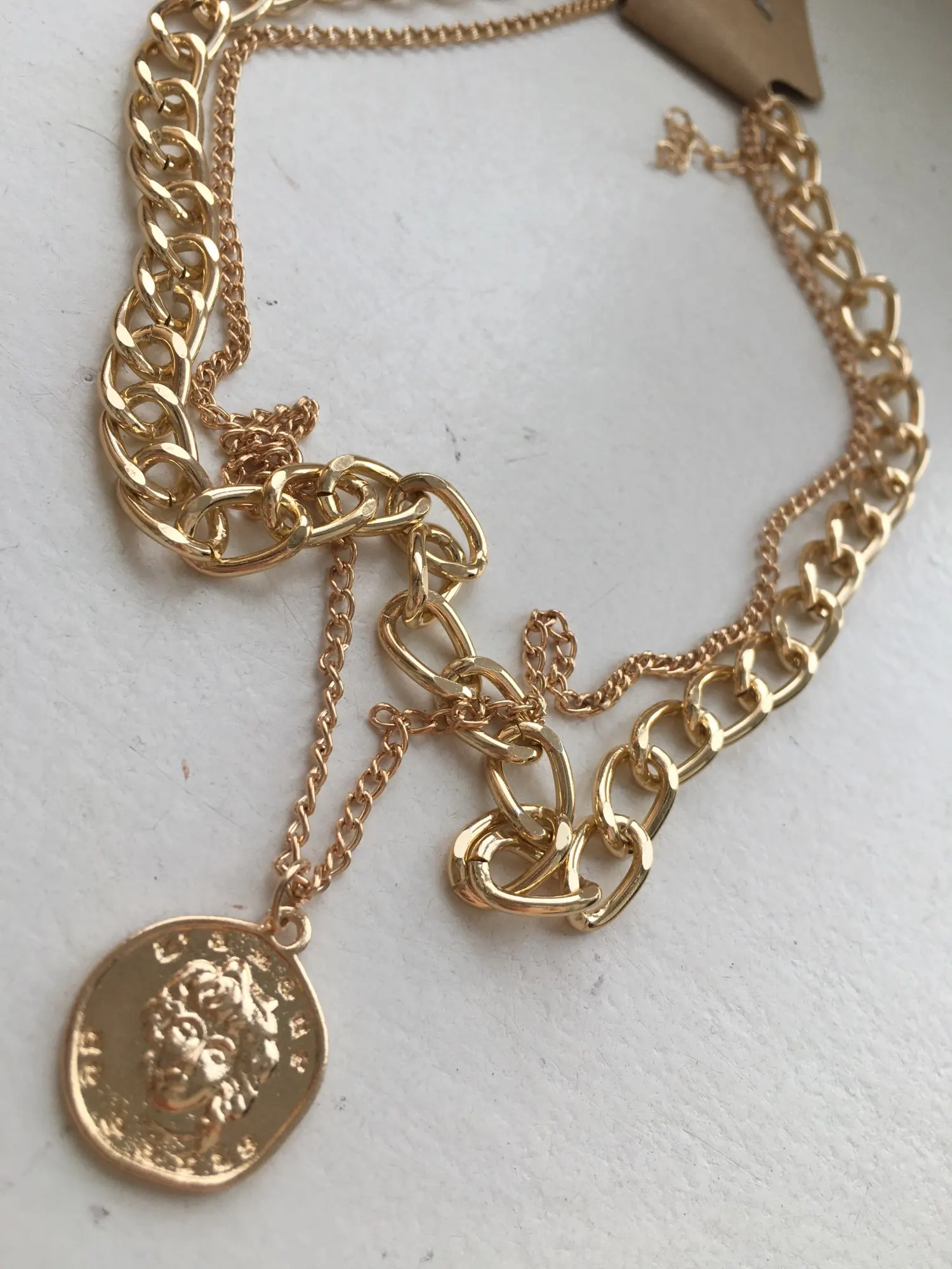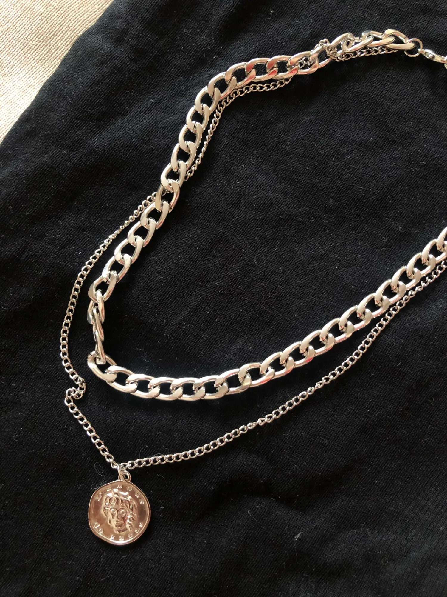 Ожерелье-цепочка, толстая, двухслойная, в стиле ретро, хип-хоп, аксессуары, короткая цепочка на ключицы