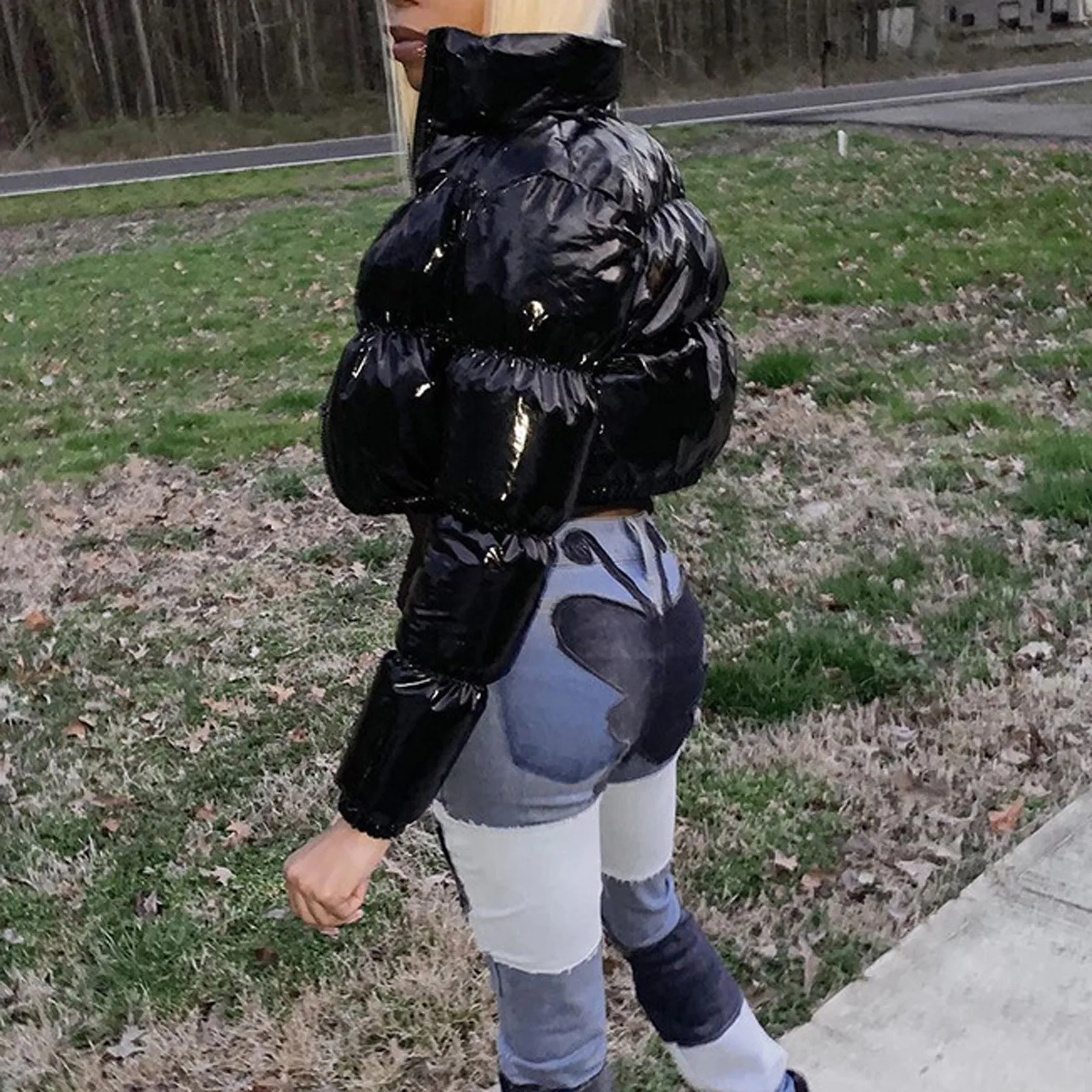 Пуховик женский из искусственной кожи, на молнии, с длинным рукавом
