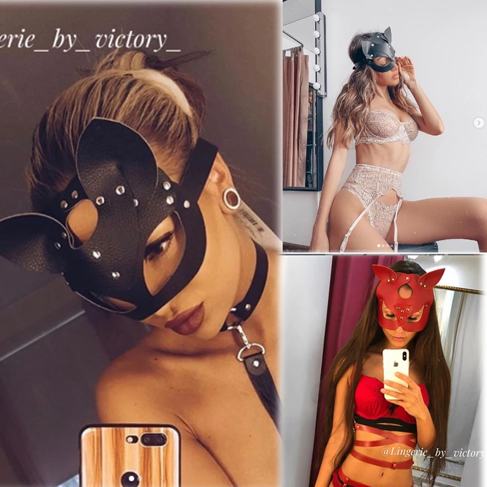 Пикантные маски для женщин кожаные черные заячьими ушками маска фет...