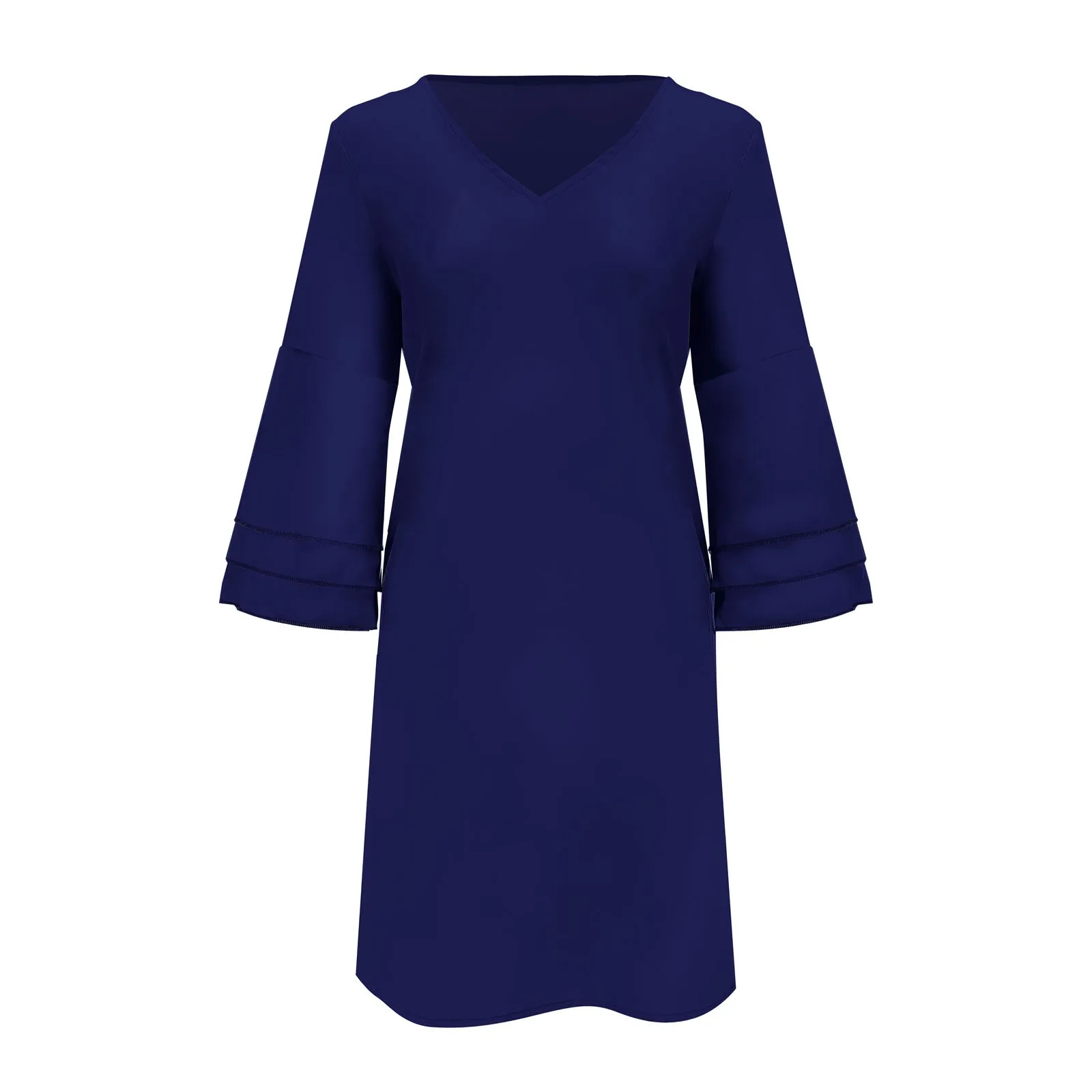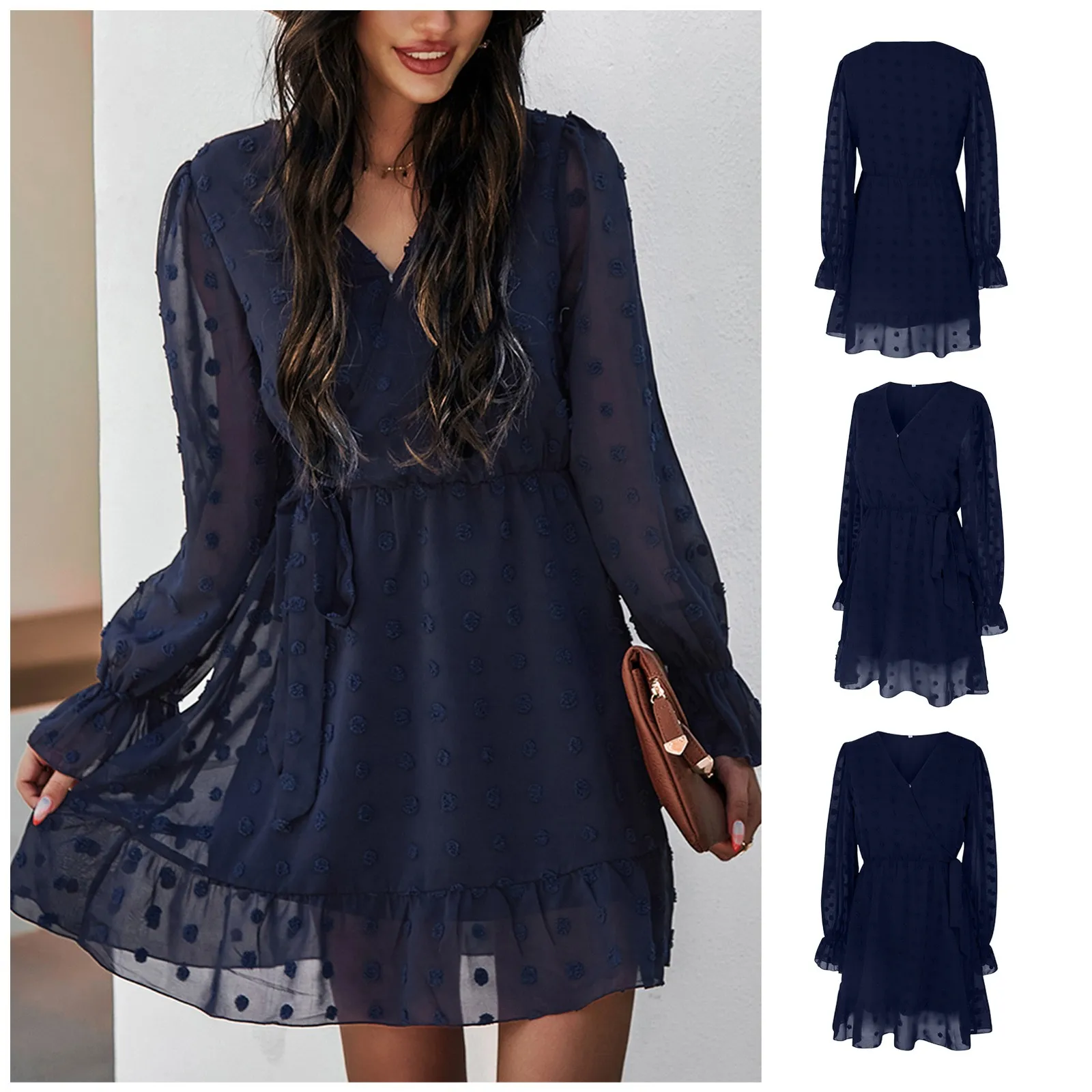 Модные элегантные женские платья с V-образным вырезом Женские однотонные платья с длинным рукавом Бандажное Платье Готическое