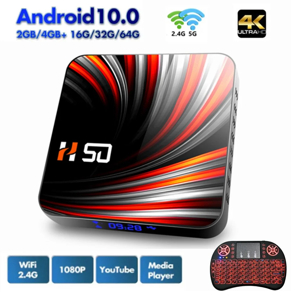 ТВ-приставка H50, Android 10, 4K, H.265, 2,4 ГГц, 5 ГГц, Wi-Fi, Blu...