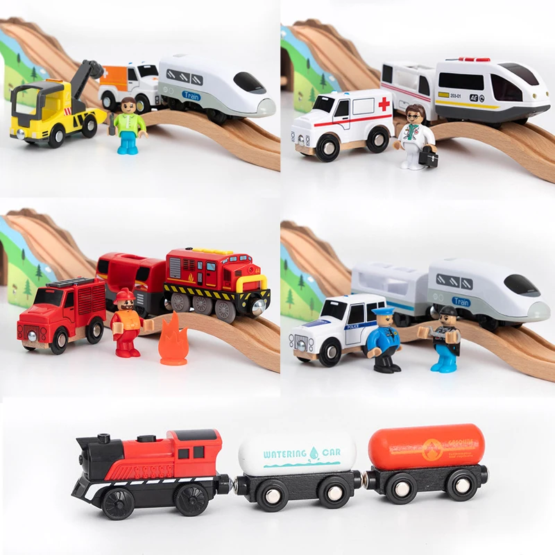 Детский Электрический магнитный поезд, игрушка, пожарная сцена, спасательный набор, детский трек, игра, сцена, совместима с деревянными дорожками