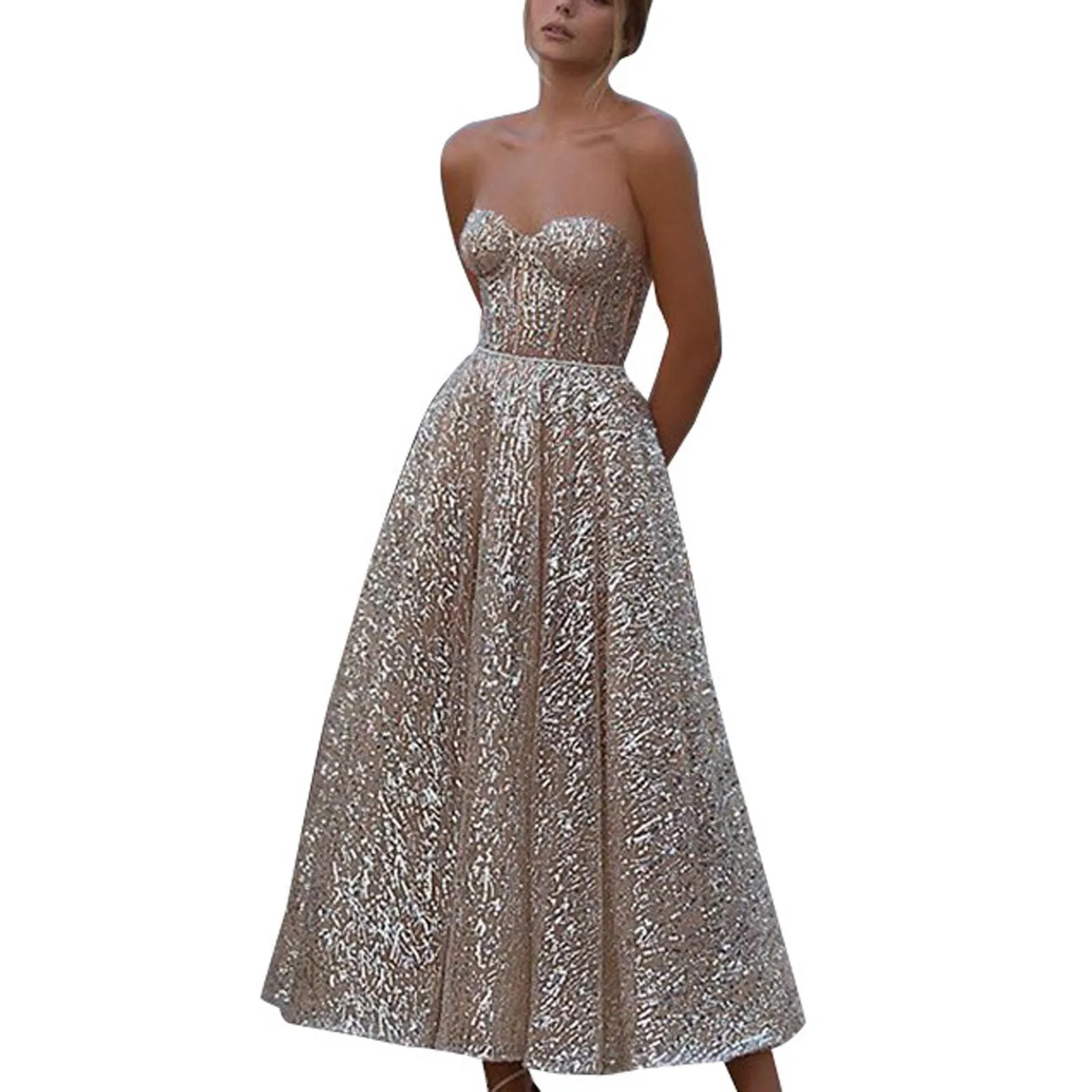 Женское сексуальное длинное платье без бретелек без рукавов с разрезом