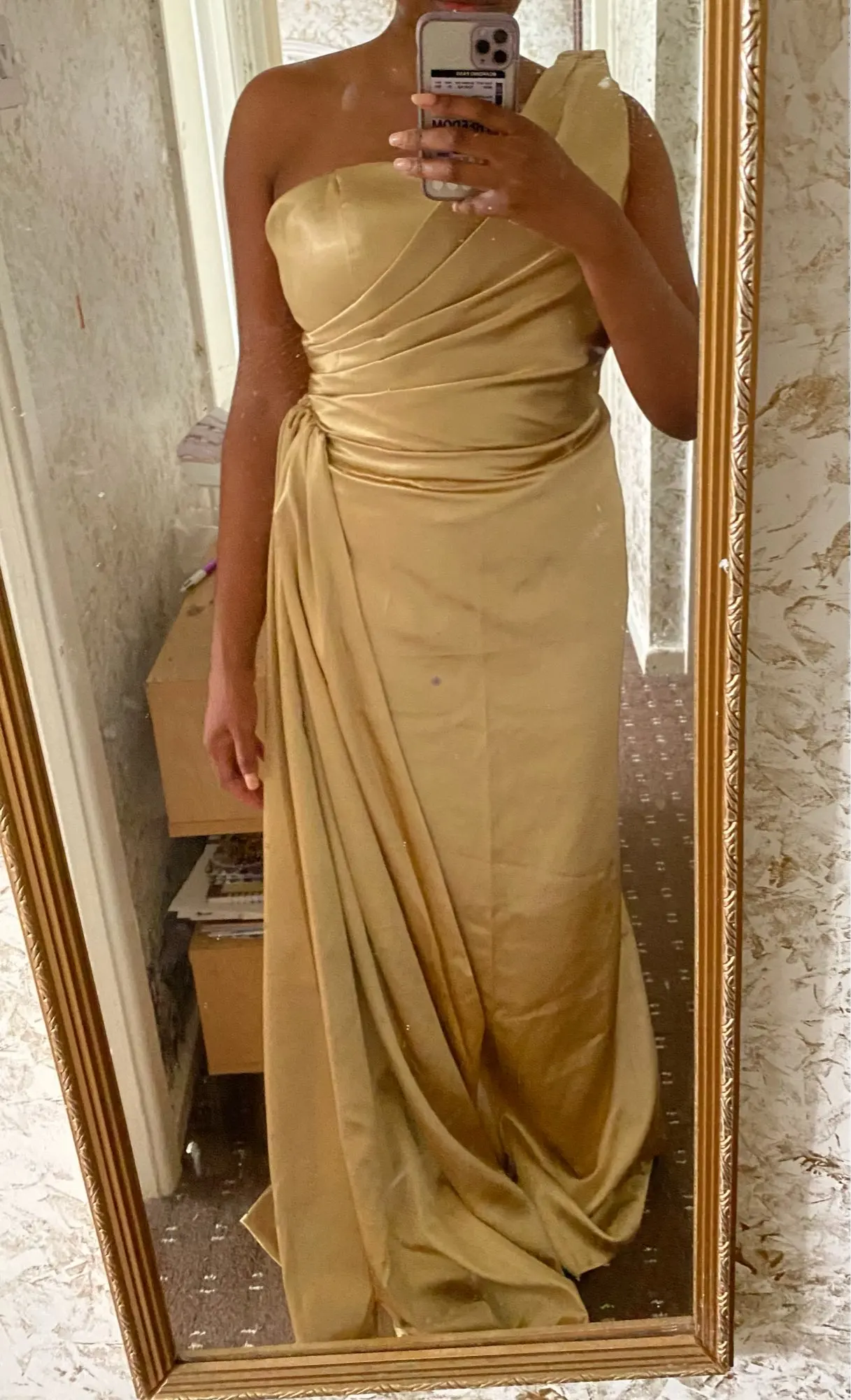 Золотые платья подружек невесты с v-образным вырезом трапециевидной...