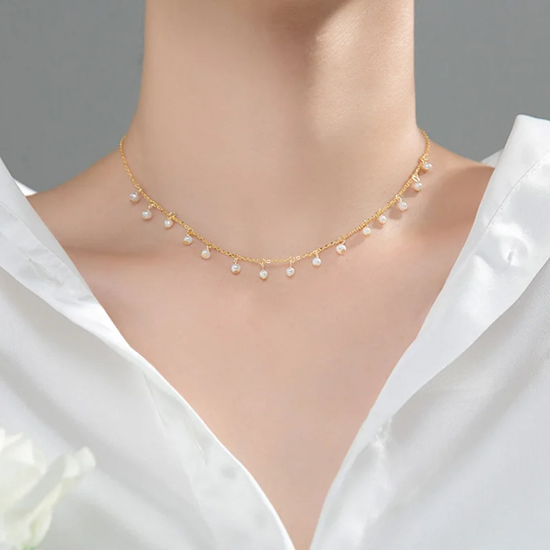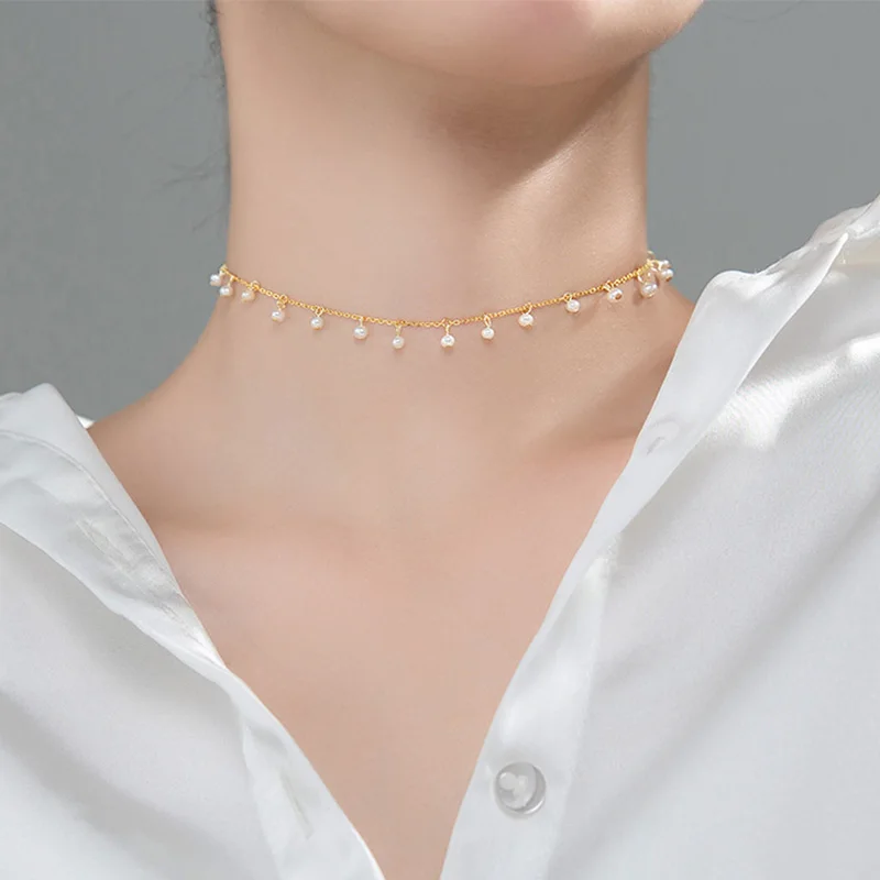 Trustdave Настоящее серебро 925 пробы минималистичное милое элегантное короткое жемчужное ожерелье для женщин Свадебное ювелирное изделие подарок DA1221