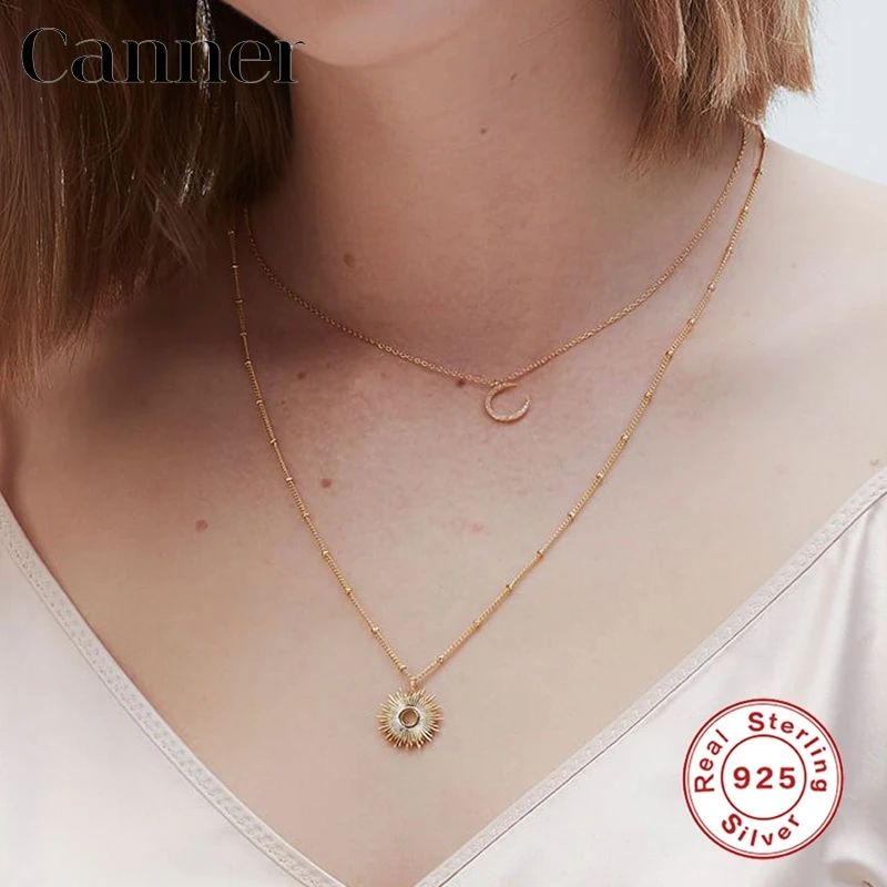 Женские ожерелья-цепочки Canner из стерлингового серебра 925 пробы с подвеской в виде ключицы и солнца, ювелирные изделия из серебра 925 пробы с воротником W5
