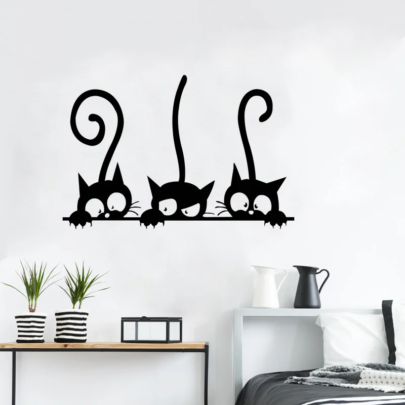 Симпатичные наклейки на стену сделай сам с тремя черными кошками, животные, украшения на стену, переключатель для гостиной, виниловые наклейки с кошками из ПВХ