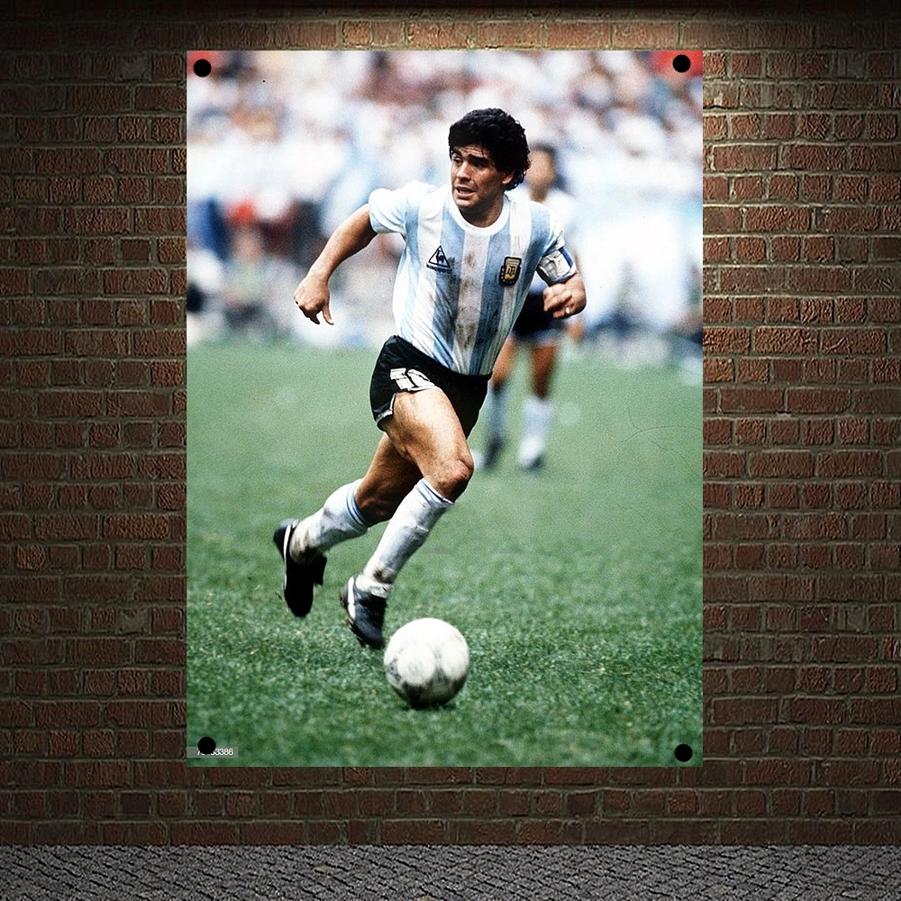 ВИНТАЖНЫЙ ПЛАКАТ с футбольными звездами Марадона 10, баннеры из Джерси, Картина на холсте, Настенная картина, украшение для дома, Ретро Флаг, наклейки на стену