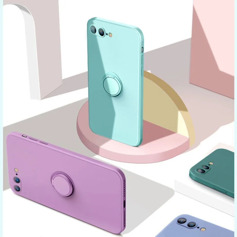 Квадратная оправа мягкий чехол для телефона из жидкого силикона чехол для iPhone 12 11 Pro XS макс 7 8, 6, 6S Plus, X XR SE2020 пальца кольцо кронштейн крышка