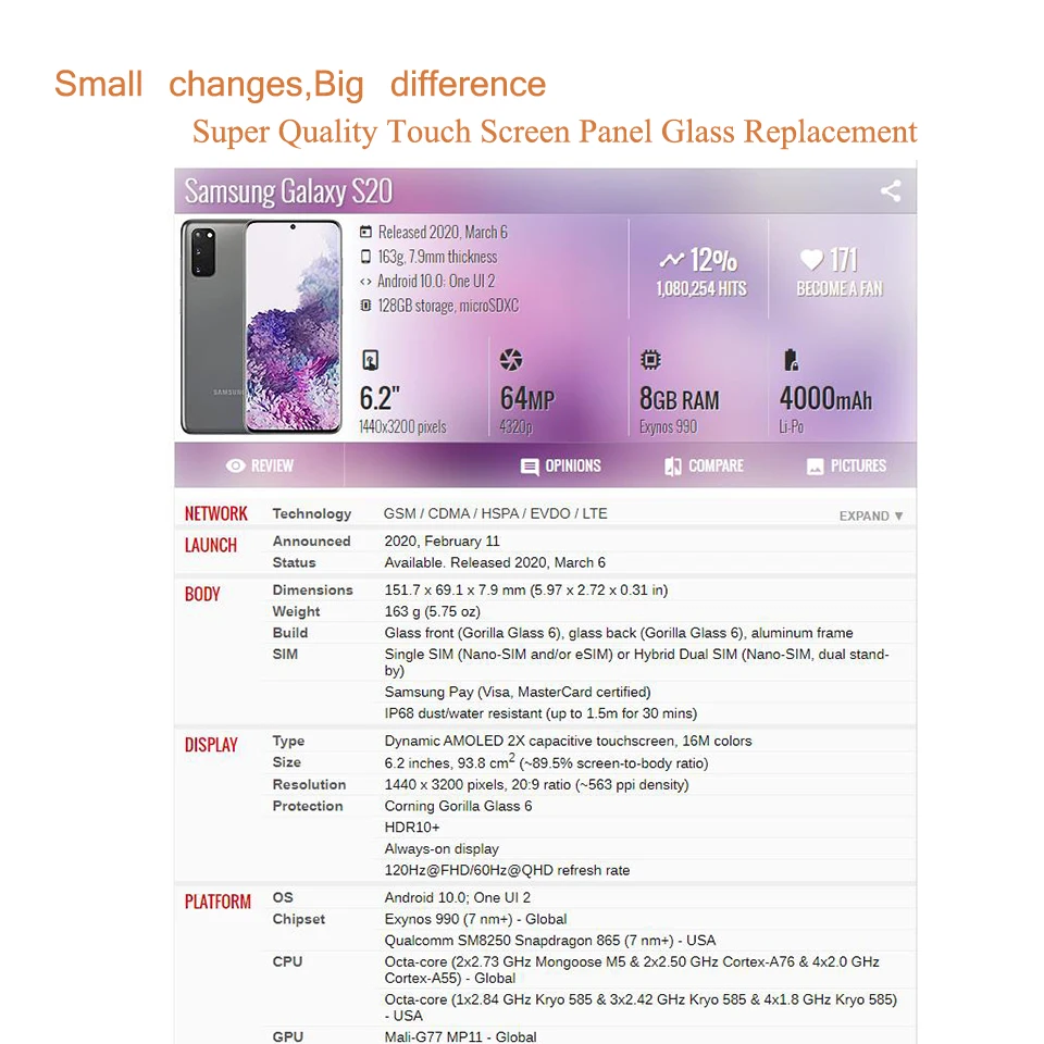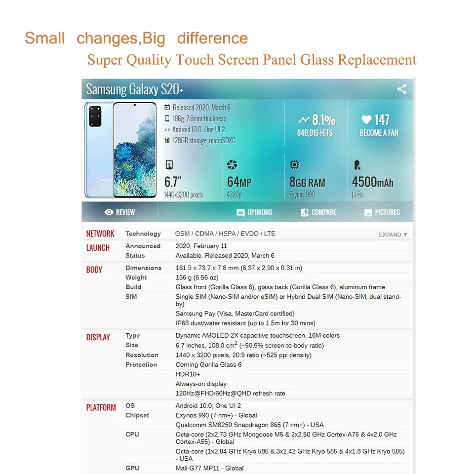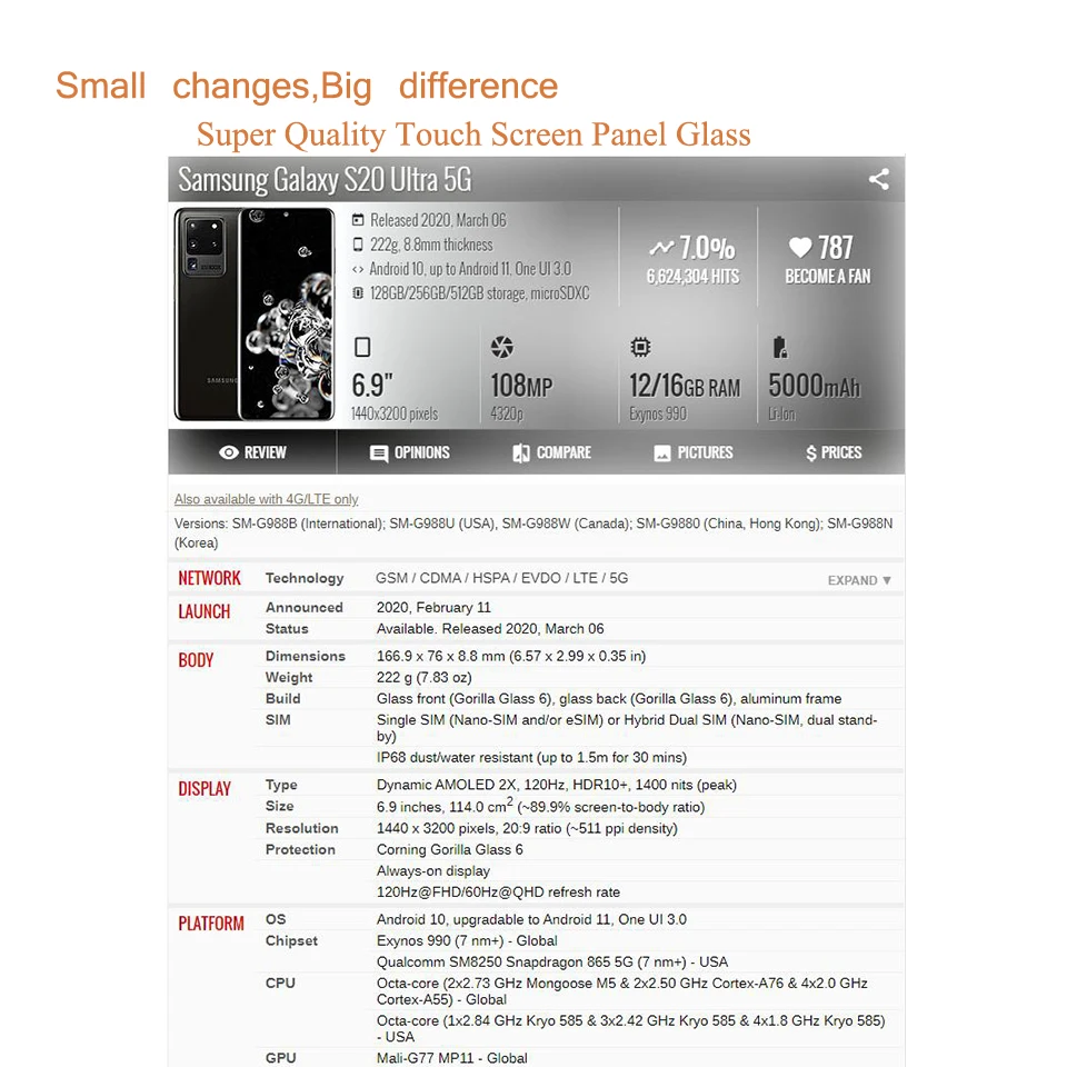 Для Samsung Galaxy S20 G980 G980F стекло S20 Plus G985 G985F S20 ультра сенсорный экран панель передняя внешняя ЖК-стекло Замена объектива