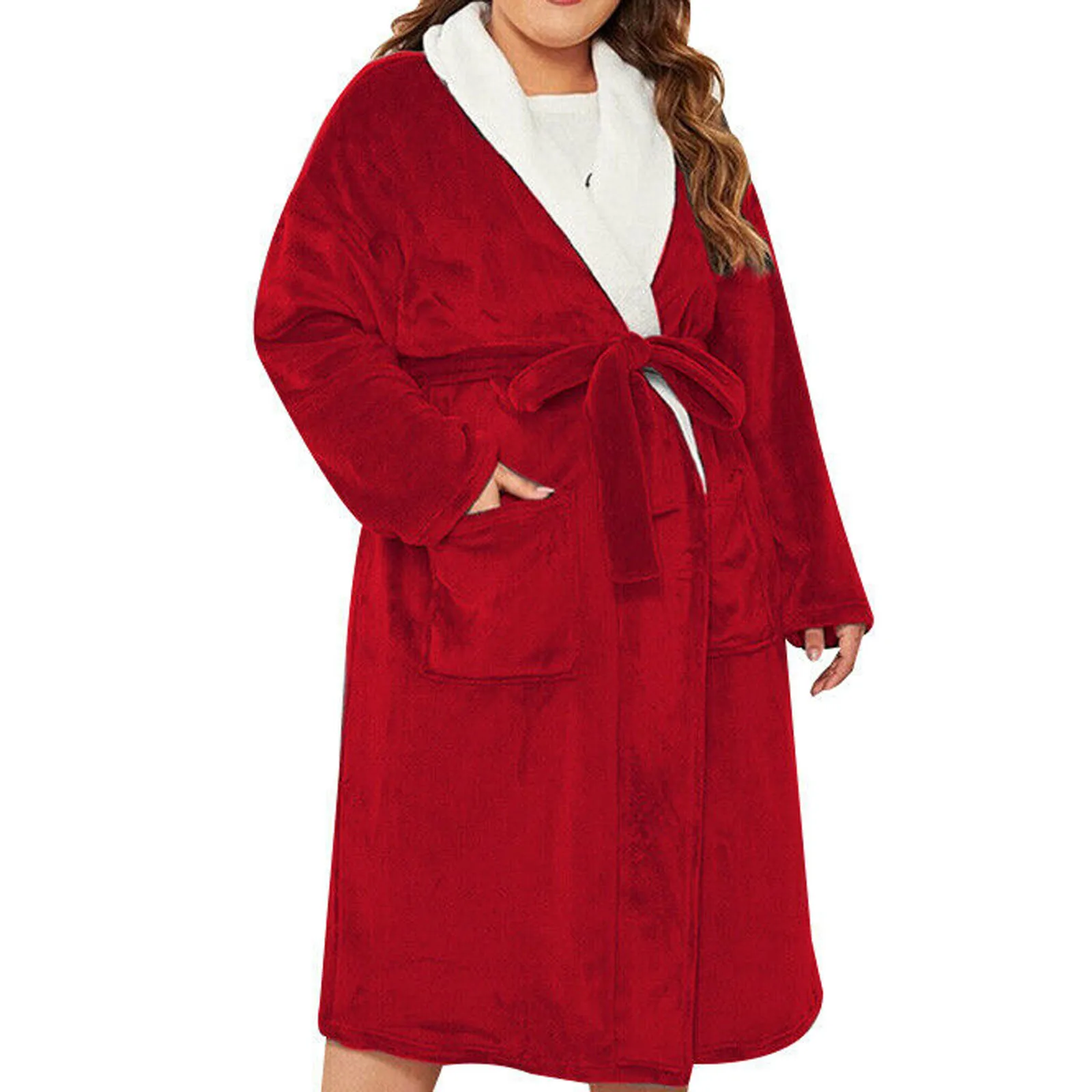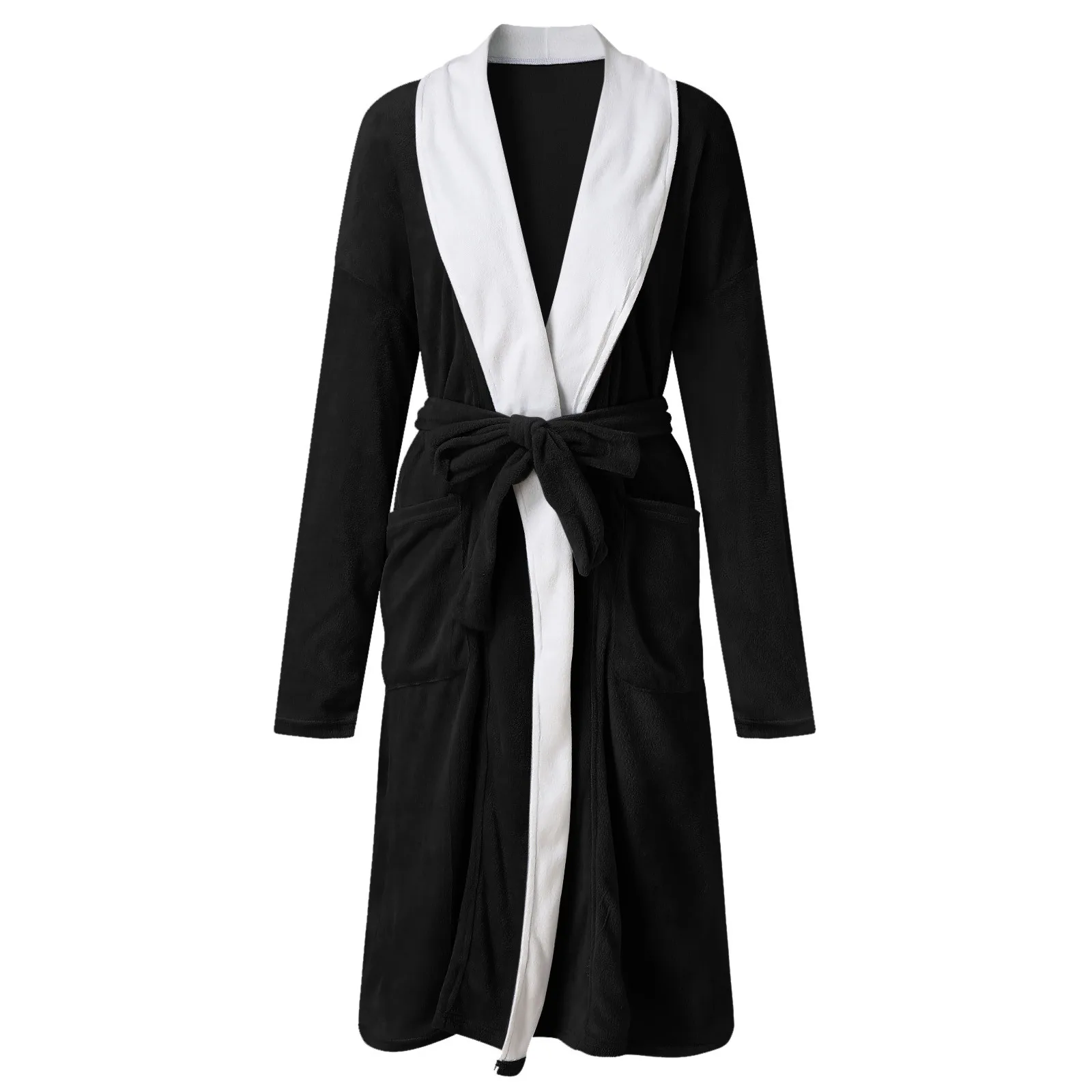 Одежда для сна для женщин; Большие размеры с лацканами толстый банный Халат зима, однотонный цвет, на шнуровке, теплая карман ремень средней длины Пижама домашняя одежда Женский Халат