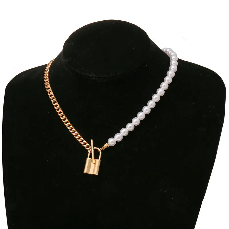 Женское Ожерелье в стиле панк, металлическая цепочка на шею, кулон с искусственным жемчугом, украшение для девушек и готиков, аксессуары
