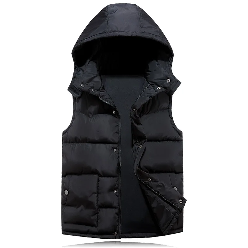 2021 мужской повседневный теплый толстый жилет из хлопка Молодежный однотонный жилет с капюшоном