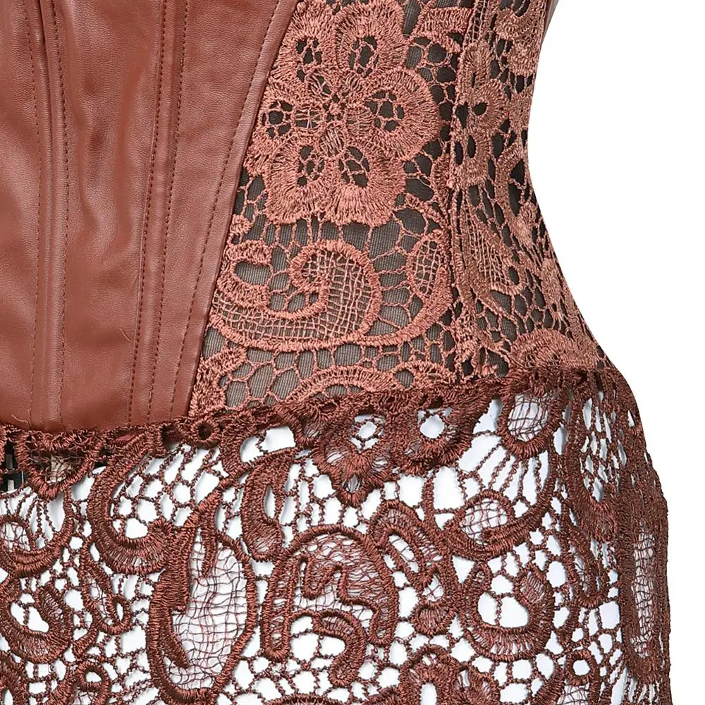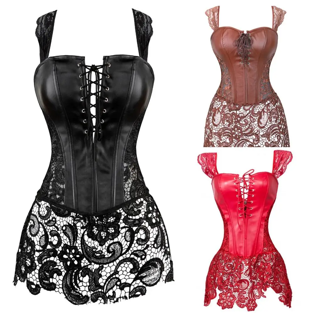 Корсет в стиле стимпанк с кружевное платье размера плюс из искусственной кожи на застежке-молнии, украшенные кружевом спинкой бюстье праздничное вечернее вечерние клубная одежда для женщин