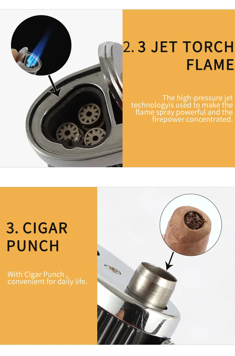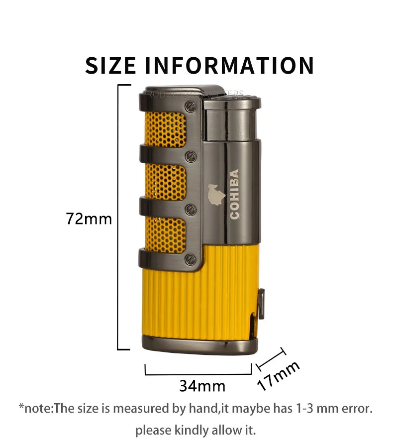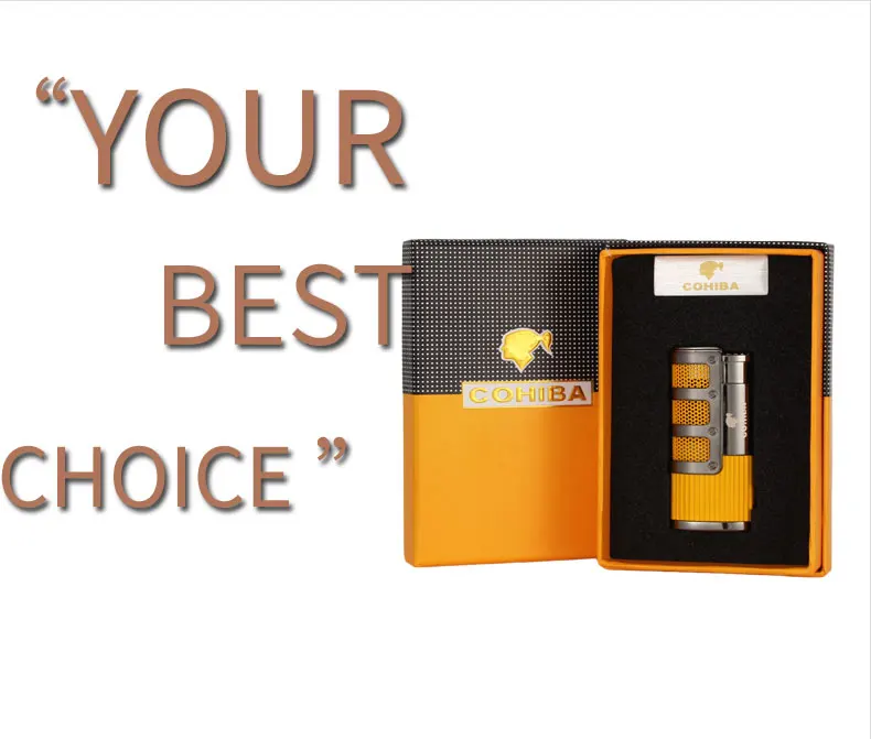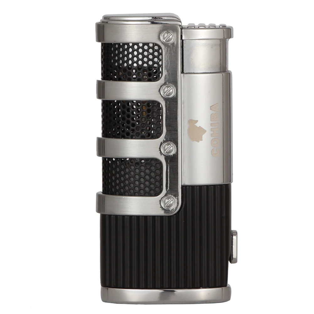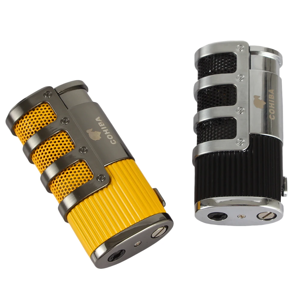 Ветрозащитная Зажигалка COHIBA фонарь металлическая зажигалка с 3 струями пламени для сигар, газовые бутановые зажигалки для сигарет, аксессуары для курения с дыроколом для сигар