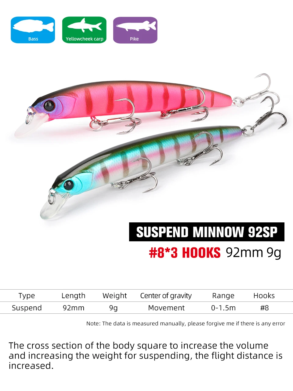 Характеристики продукта: 1. Так как движение крючка вперед и назад может быть подавлено, можно было реализовать спецификацию на 3 крючка, при которой крючки не спутываются друг с другом класса 9 см. 2. Два фиксированных веса имеют форму тонкой пластины, что увеличивает преимущества снижения центра тяжести, улучшает стабильность восстановления. 3. Поперечное сечение тела в квадрате для увеличения объема и увеличения веса при подвешивании расстояние полета увеличивается. 4. Цельная формованная губа, воздушная емкость на лицевой стороне тела увеличена, а осанка изменяется на более горизонтальную. И настройка быстрой обмотки, чтобы предотвратить порхание 5. Боковой низкий глаз при езде, что значительно способствует улучшению износостойкости. Можно подавить движение крючка вперед и назад, не запутываясь Детали продукта: 1. Имя: DW78 2. Тип: приманка для ловли гольяна 3. Вес: 9 г 4. Длина: 92 мм 5. Действие: приостановление 6. Глубина погружения: 0-1,5 м 7. Крючок: #8 8. Цвет: кол. Кол. B Col.C Col.D Col.E Col. Ф Кол. G Col.H Col. Я Кол. J Col.K Col.L Col. М Кол. Н