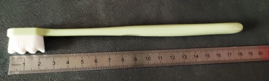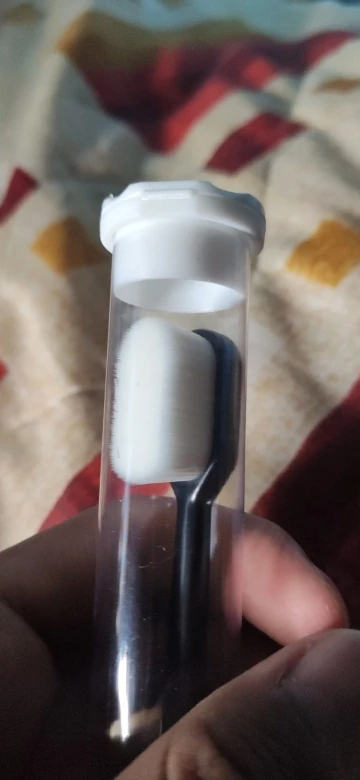 Доставили достаточно быстро. Щётка в футляре. Как видно по фото, на щетке какие-то пылинки, но вообще не критично. На ощупь мягкая. В использовании: из-за того, что щитинок много, щетка ощущается во рту достаточно плотно. Очищает зубы нормально, не более того. Не сильно комфотно и привычно ей чистить, хотя использую в повседневной чистке мягкую щетку (данная ультрамягкая щетка оказалась в деле плотнее, чем обычная мягкая). Но данная щётка точно никаким образом не сможет повредить десны. Думаю, что для повседневной чистки не подойдет, так, в дополнение к обычной щетке