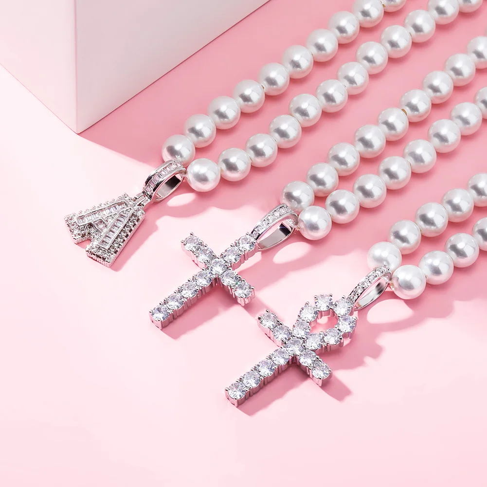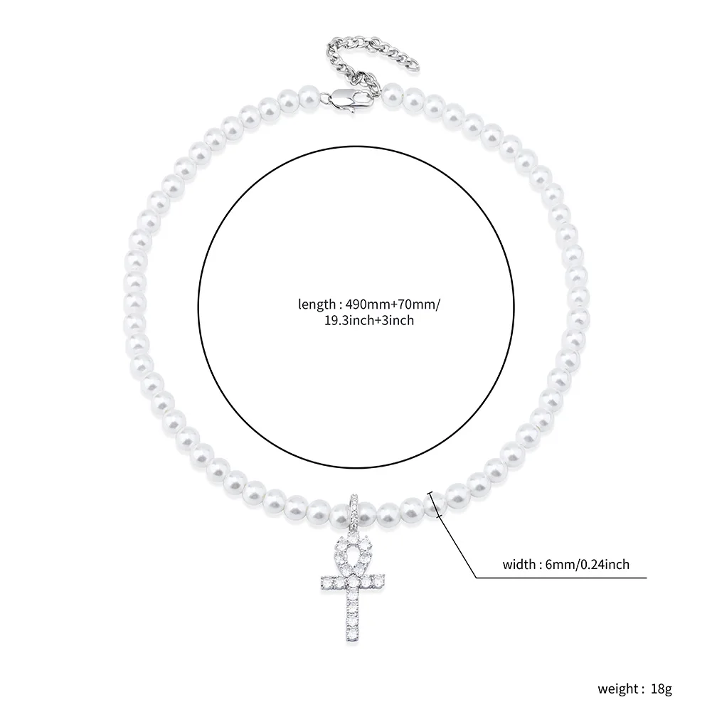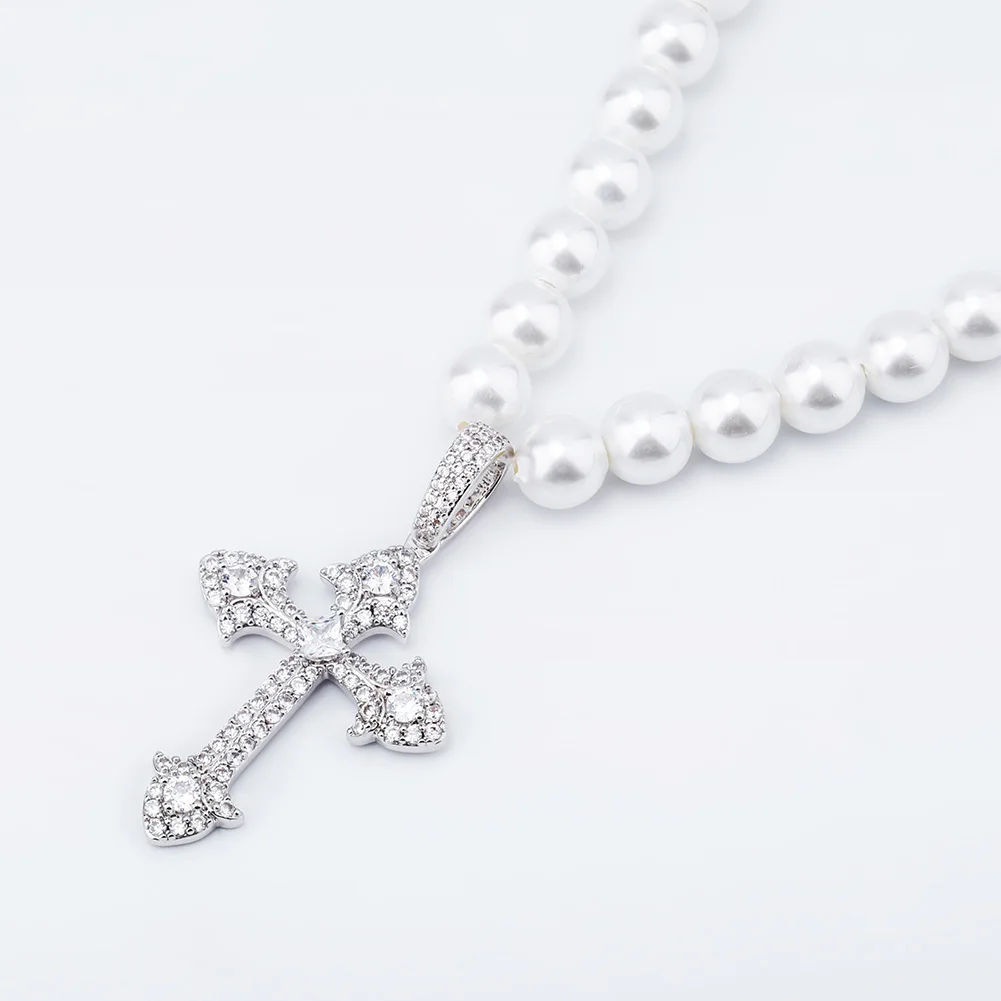 TOPGRILLZ 6 мм 8 мм винтажная мода, белый жемчуг ожерелье со льдом кубического циркония Крестбабочка кулон Ювелирное Украшение для женщин