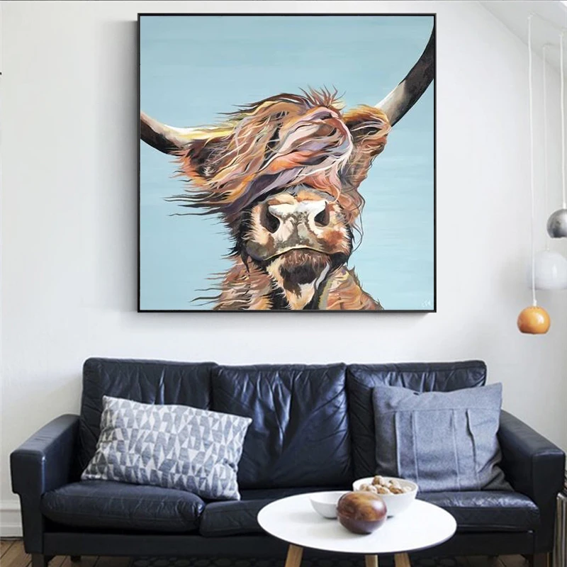 Акварель Highland плакаты с изображением коровы Настенная картина д...