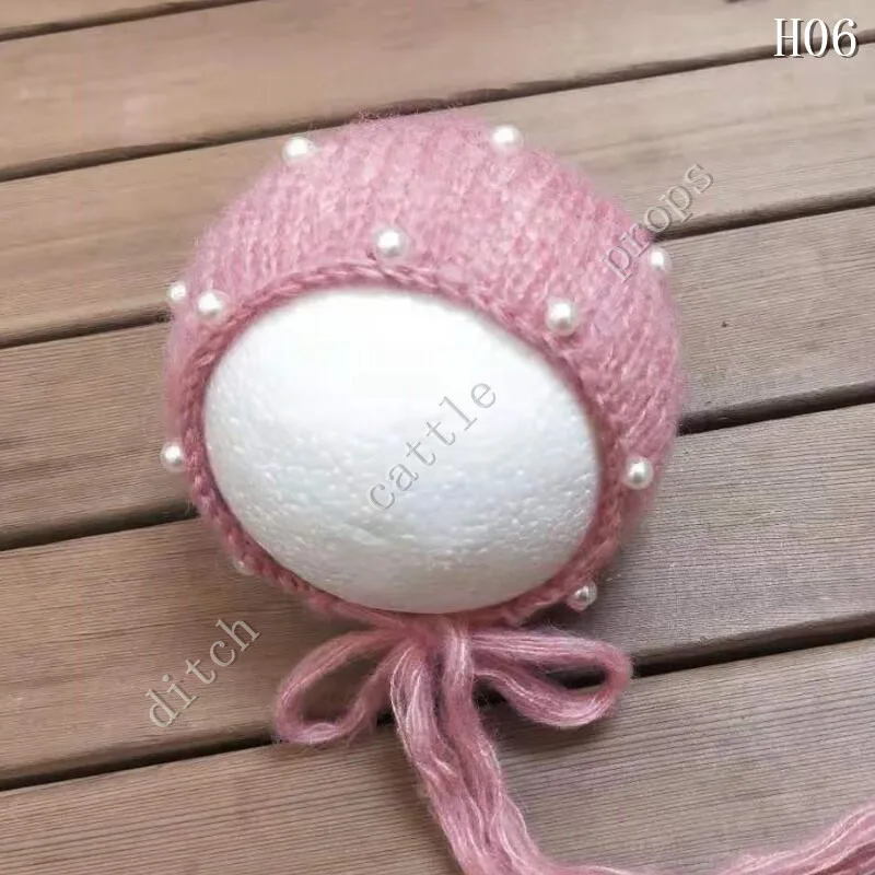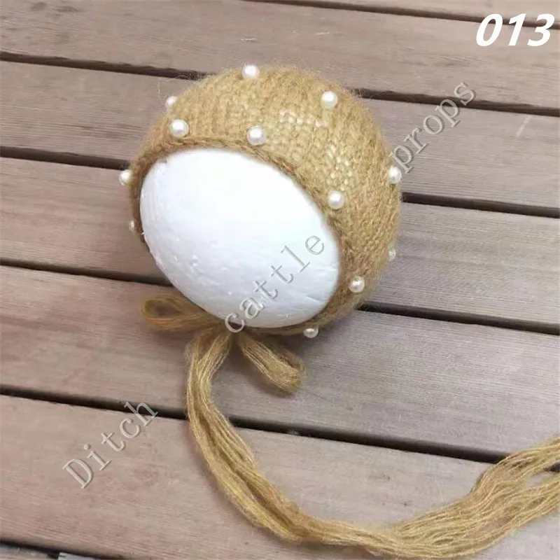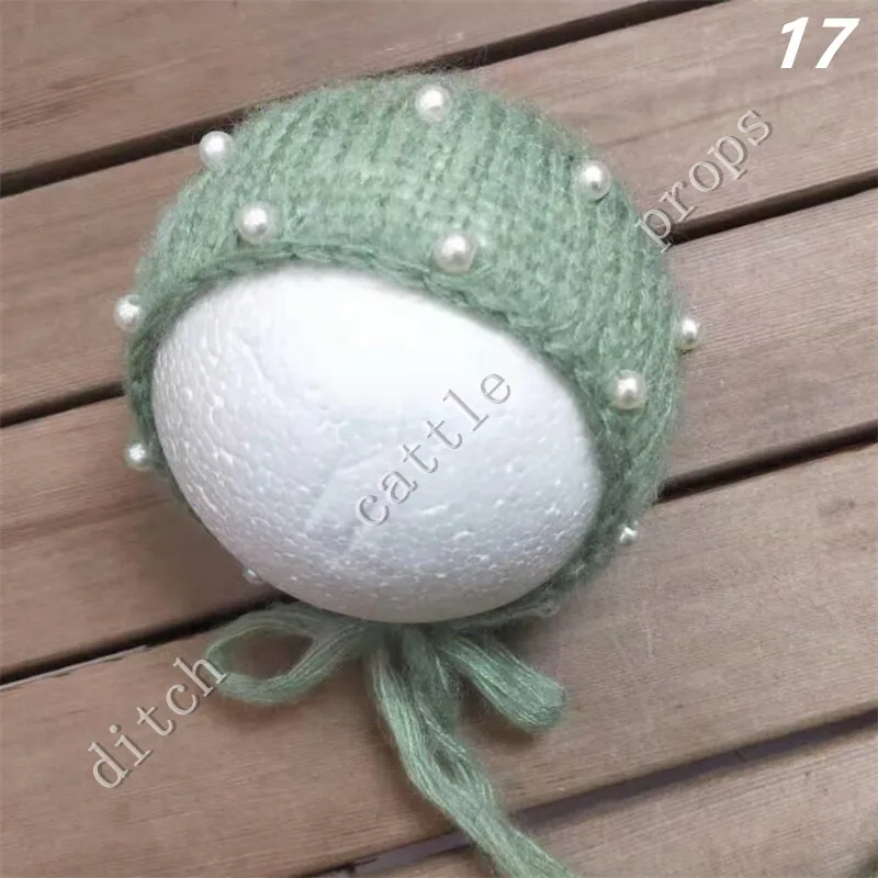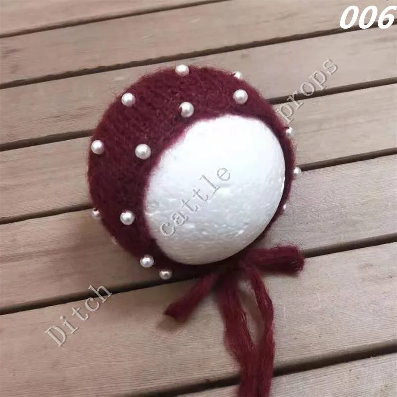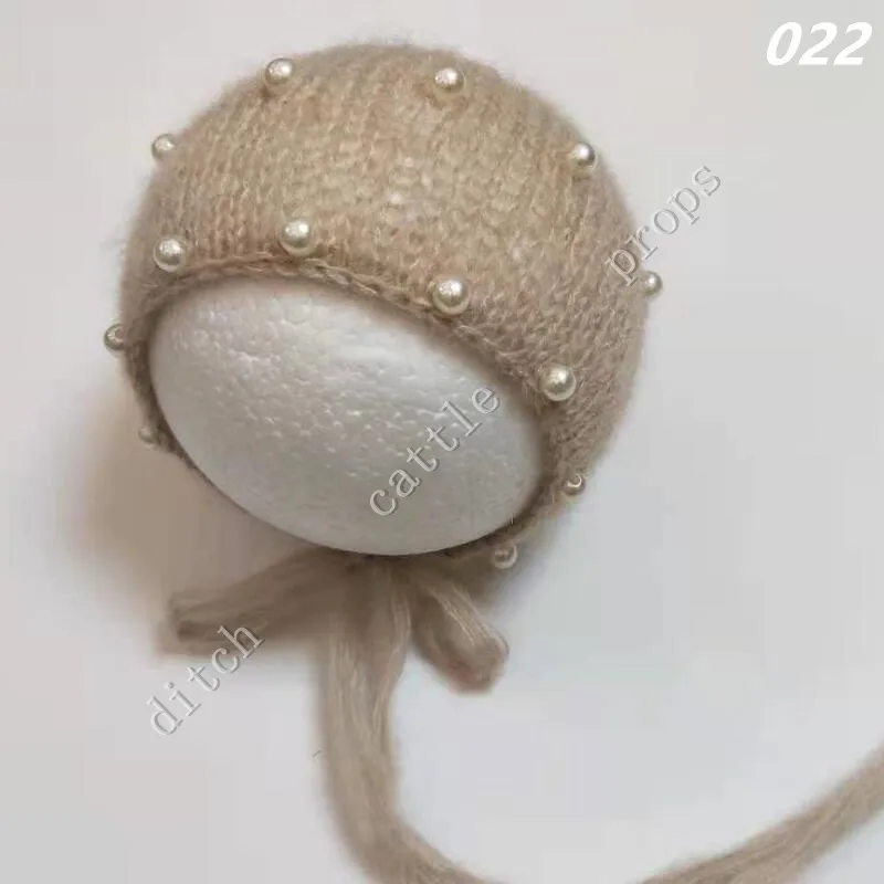 Мохеровая шапочка ручной вязки, пластиковая шапочка с жемчугом для новорожденных