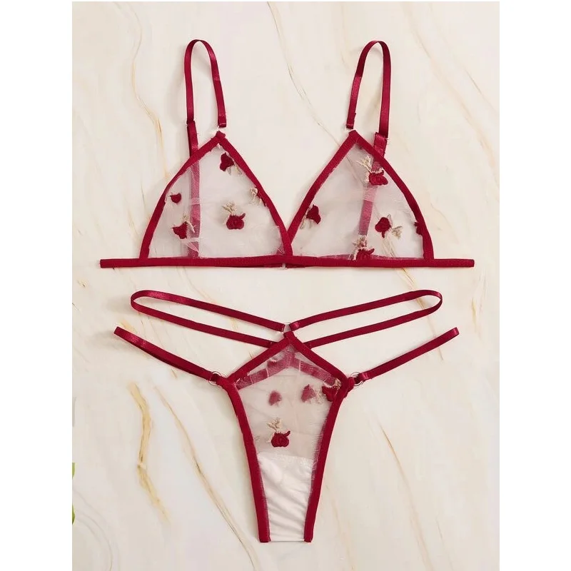 2021 Новое поступление, женское сексуальное нижнее белье, комплект из двух предметов с цветочной вышивкой, сетчатый прозрачный бюстгальтер, брючный костюм для женщин