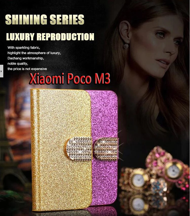 Блестящий Алмазный Hoesjev для Poco M3 чехол роскошный Флип кожаный чехол для мобильного телефона чехол для Xaomi M3 M 3 задняя крышка корпус 6,53 дюймов