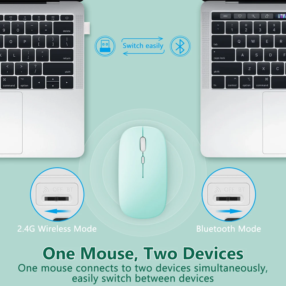 Перезаряжаемая беспроводная мышь Bluetooth для компьютера, ПК, iPad, мышь, два режима Bluetooth 4,0 + USB, беспроводная мышь, 3 регулируемых DPI