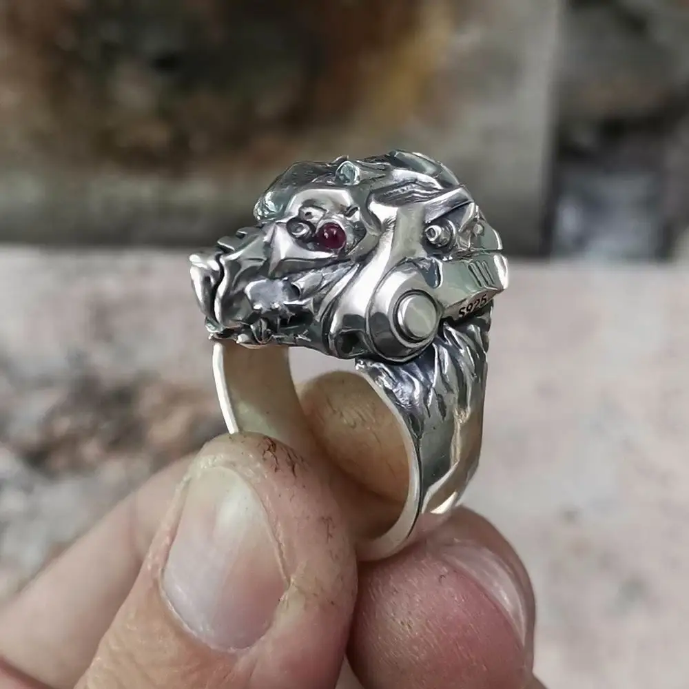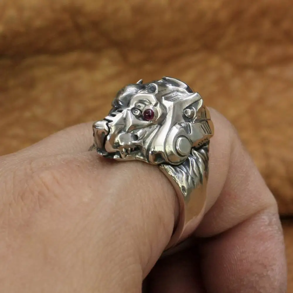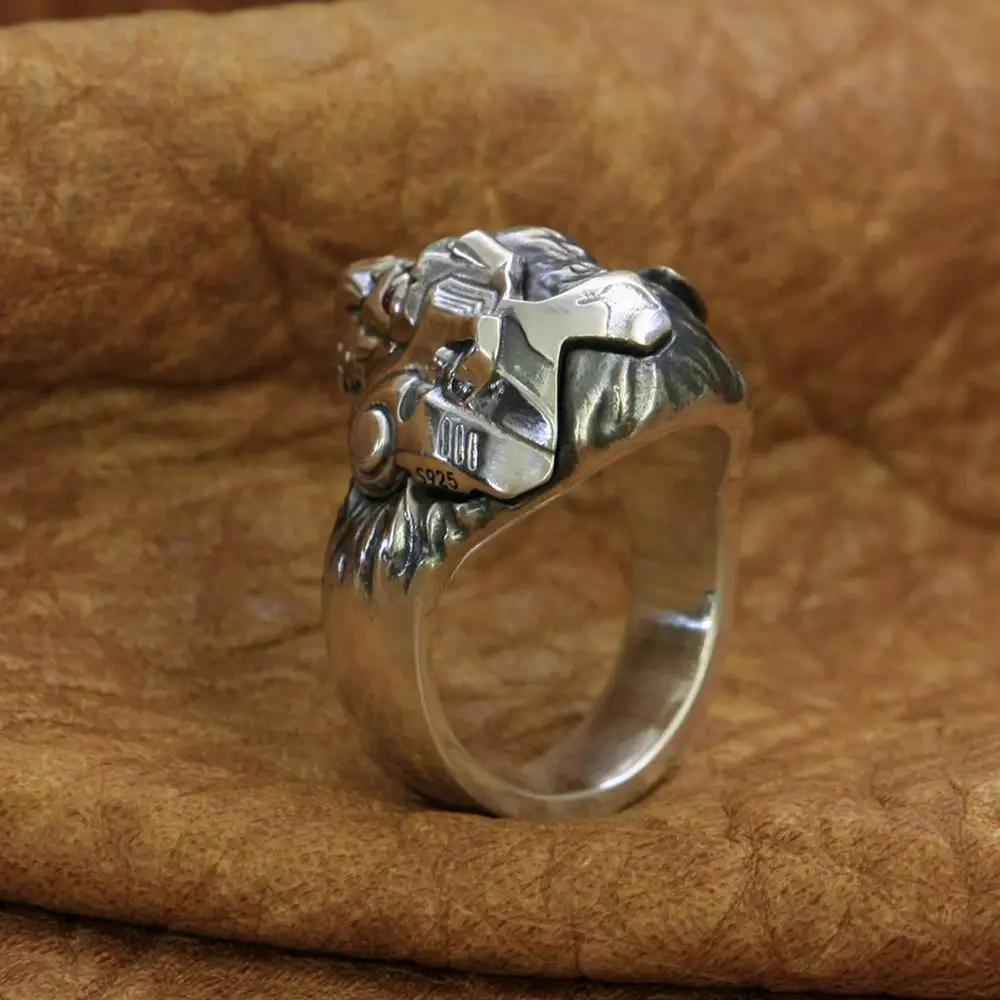 925 пробы серебро полу машина войны медведь кольцо мужские Байкер панк кольцо TA252 нам Размеры 7 15
