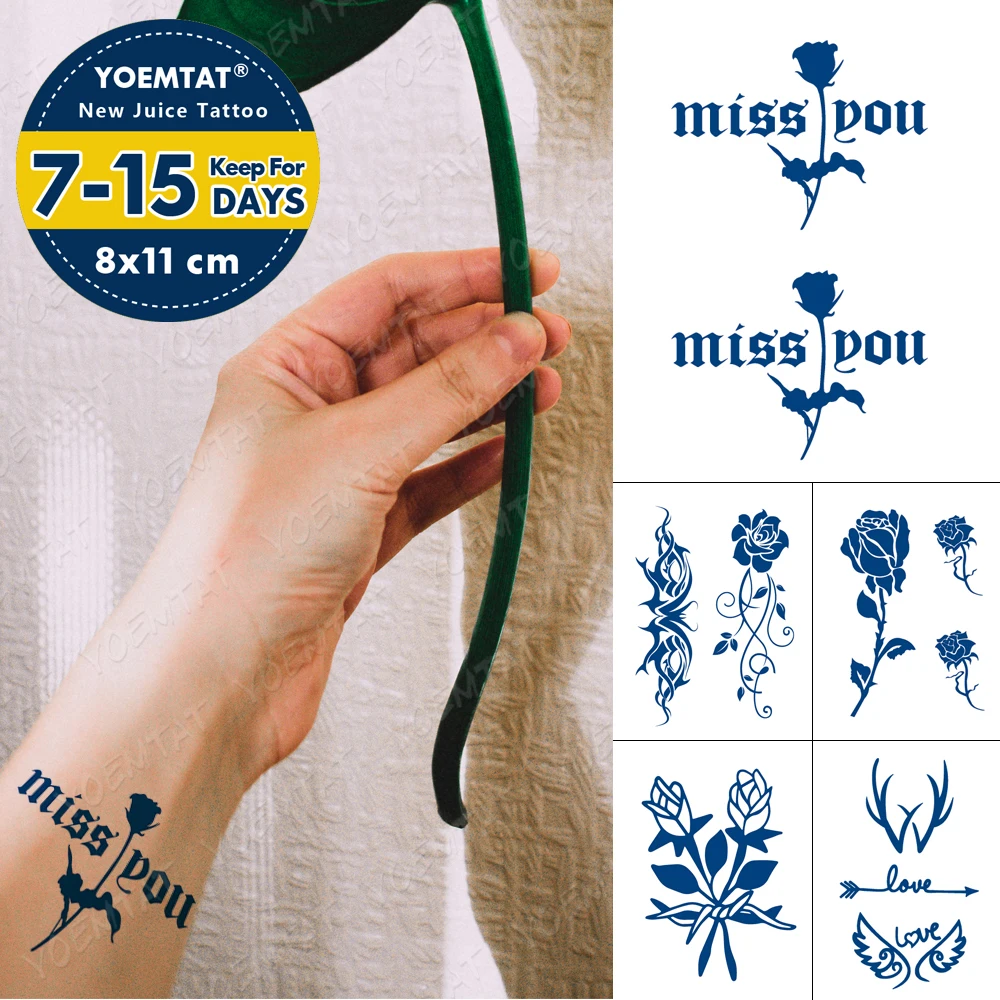 водостойкая тату наклейки временные тату Стойкая водостойкая Временная тату-наклейка Juice Ink, татуировки с розовым крылом, любовью, тотемем, цветами, рогами, боди-артом на руку, искусственные татуировки для женщин