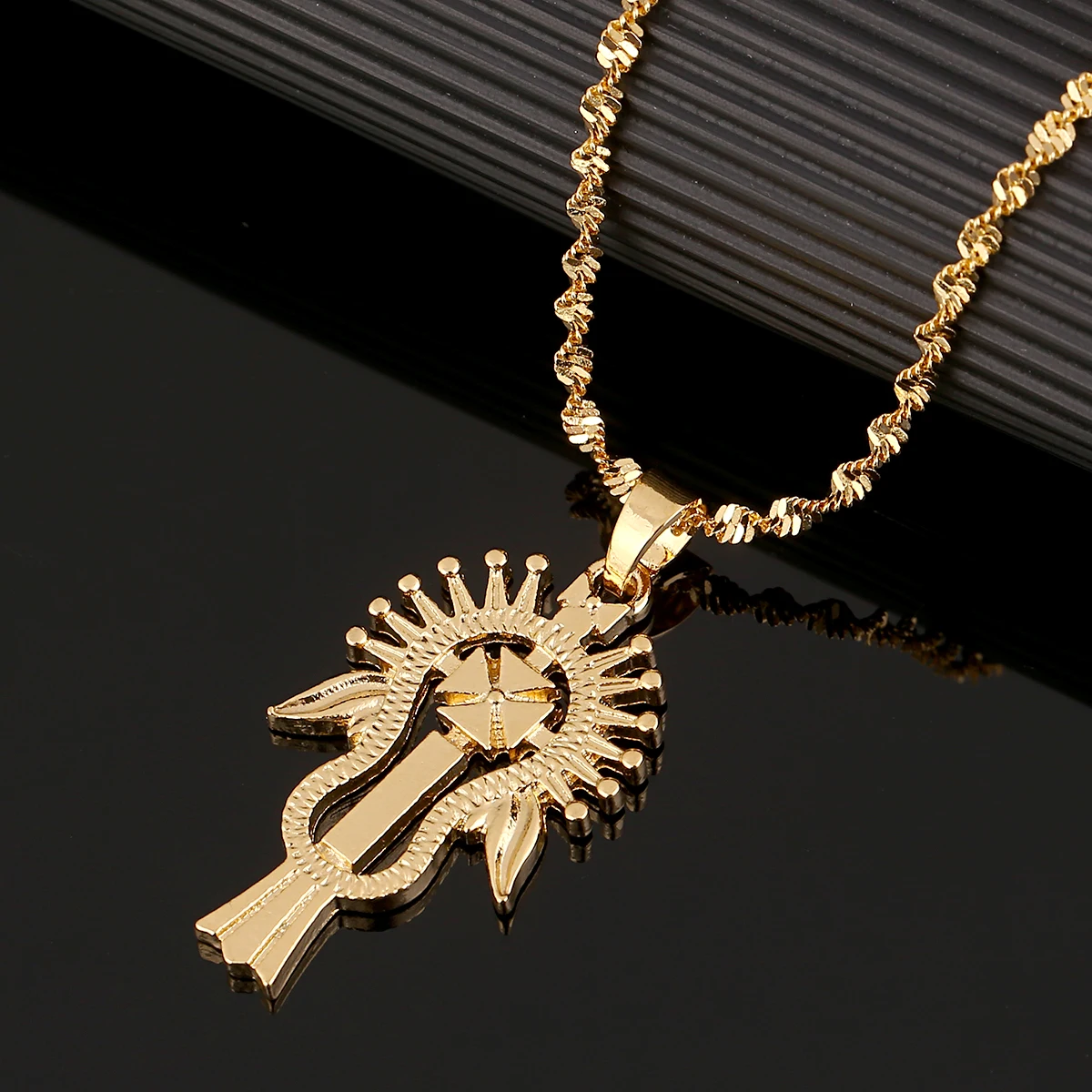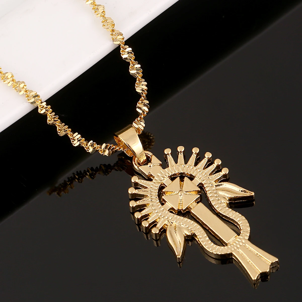Эфиопское ожерелье с подвеской золотого цвета для женщин и мужчин, очаровательные этнические африканские ювелирные изделия
