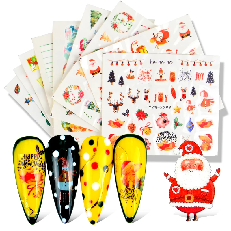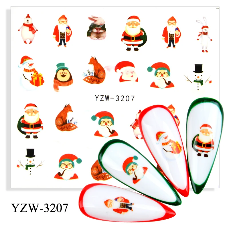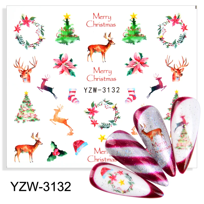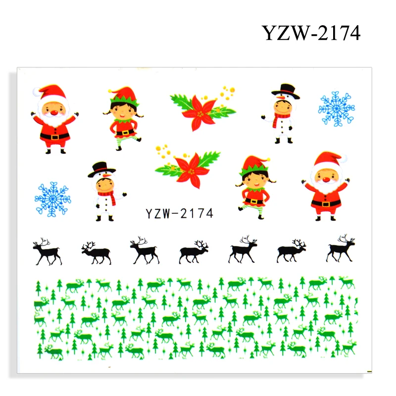 Рождественская наклейка для ногтей, 1 шт., Санта-Клаус, олень, снег...