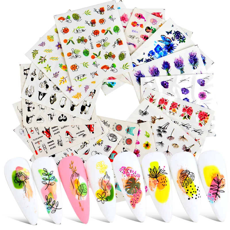 1 лист красочные цветочные наклейки для ногтей слайдеры Цветы Листья Мандала лист Геометрия клейкие наклейки для ногтей дизайн из фольги