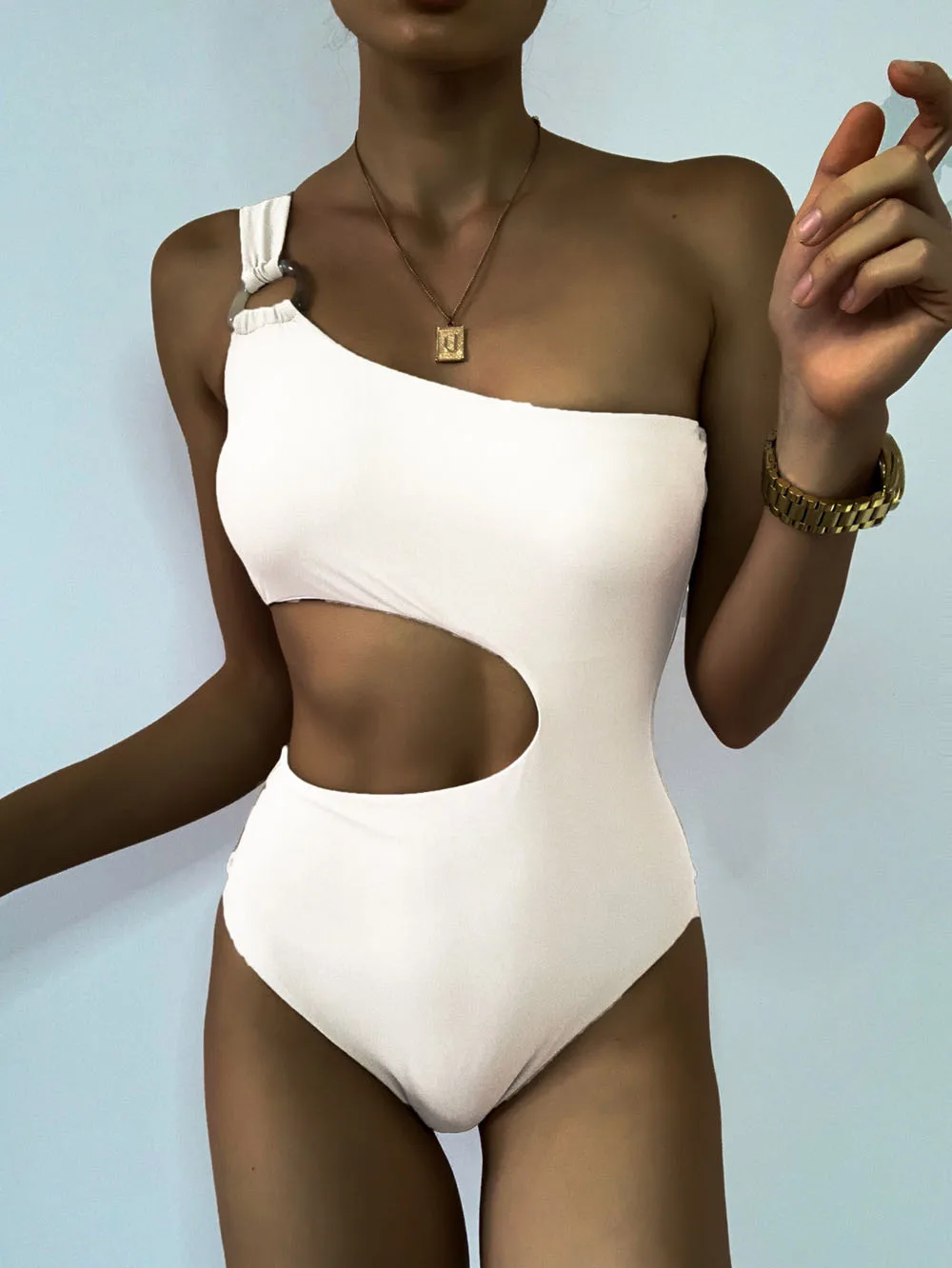 Цельный купальник INGAGA на одно плечо, женский купальник 2022, одн...