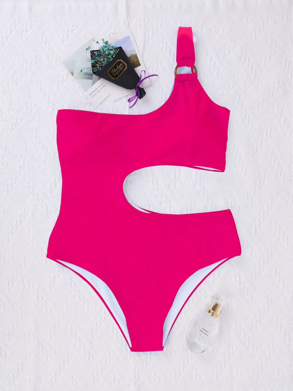 Женский сплошной купальник на одно плечо, неоновый привлекательный ...