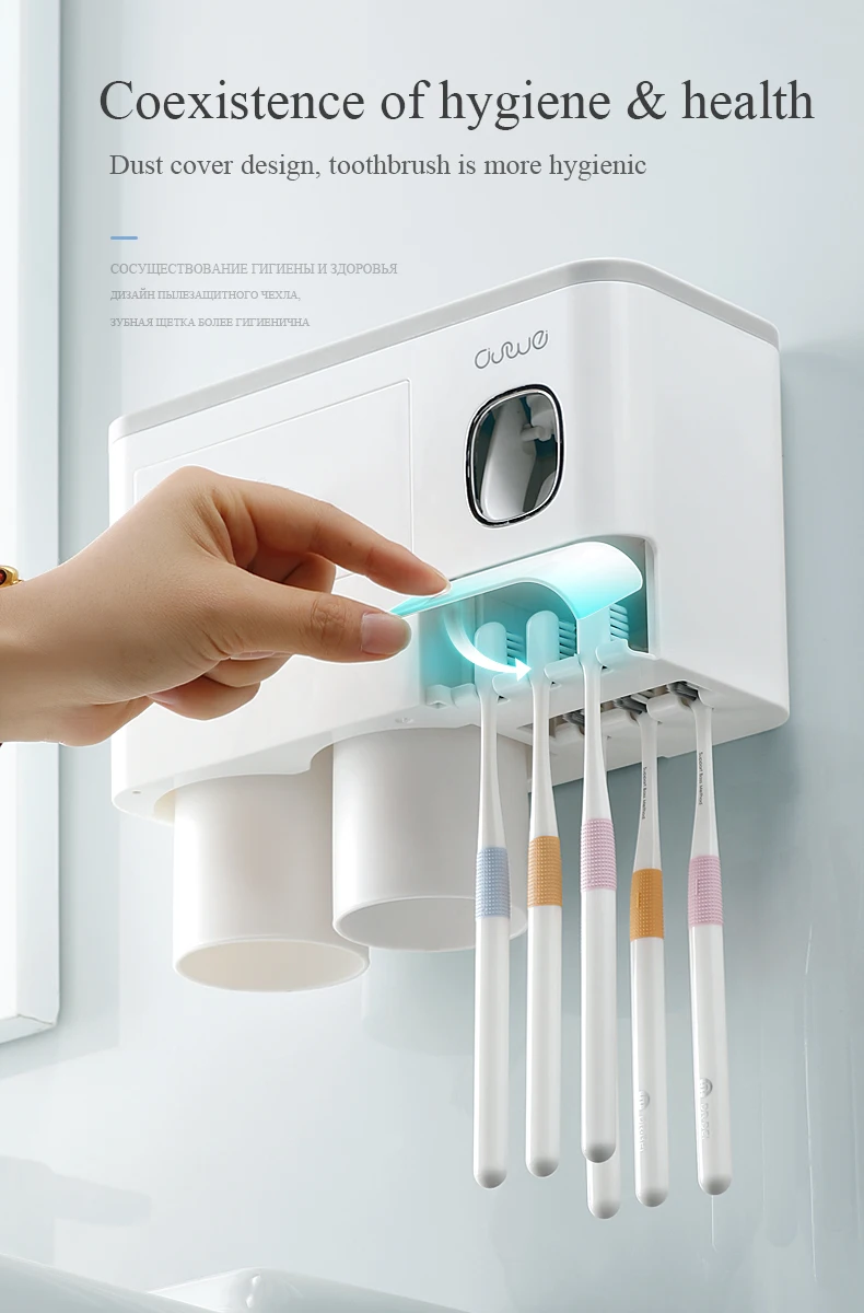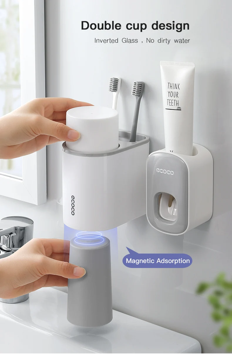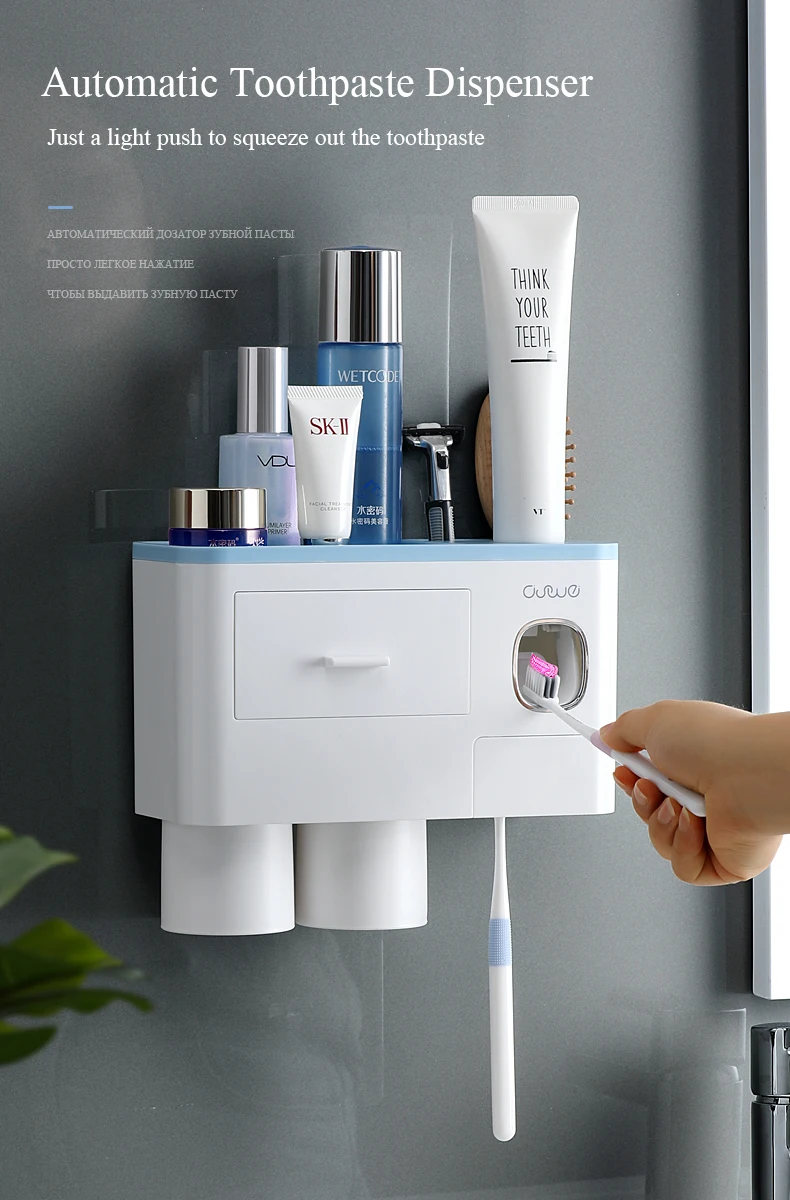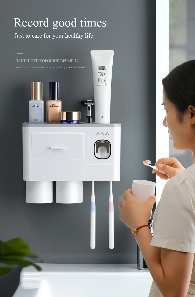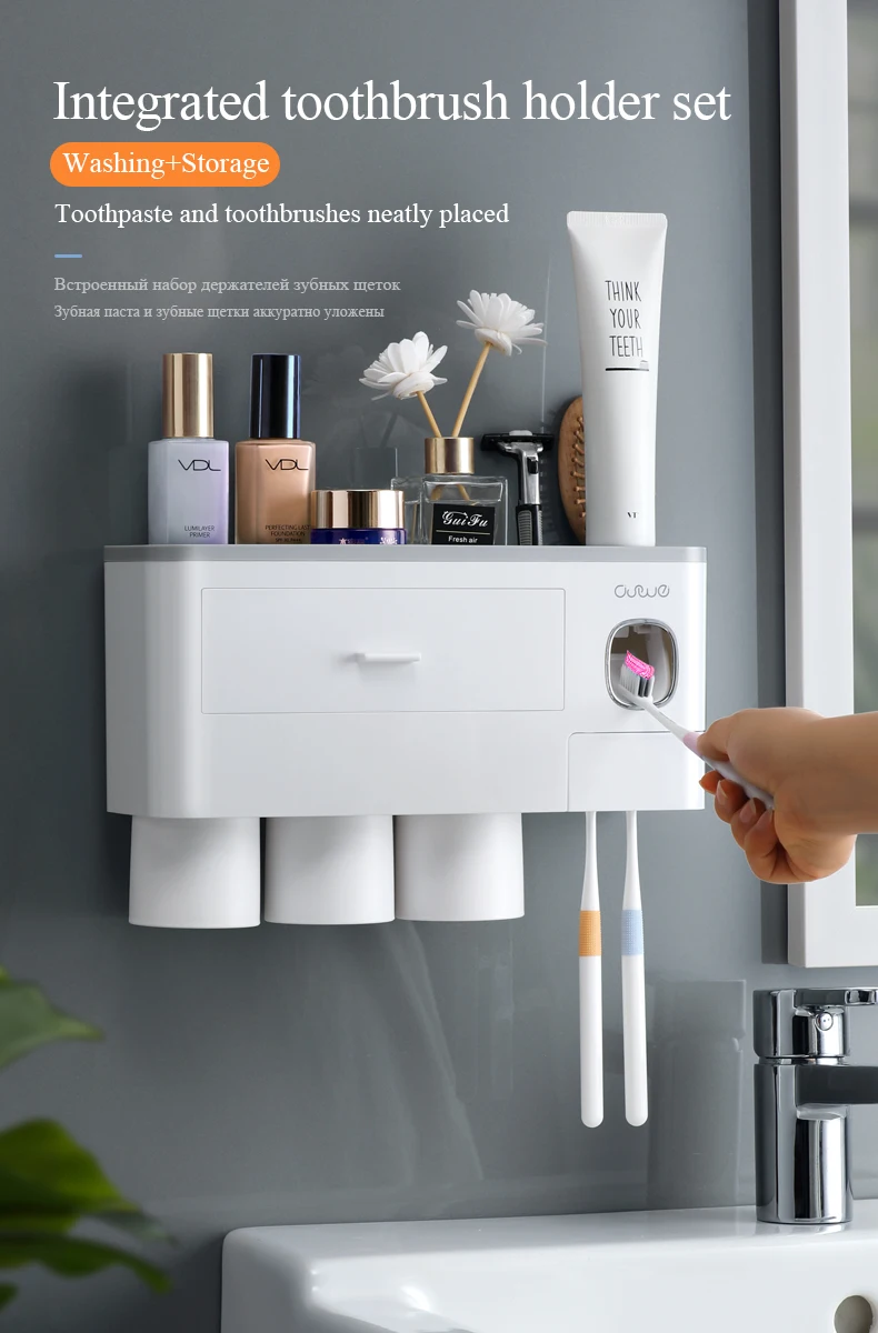 Держатель для зубных щеток, автоматический диспенсер для зубной пасты, настенный стеллаж для хранения туалетных принадлежностей, набор аксессуаров для ванной комнаты с магнитной чашкой