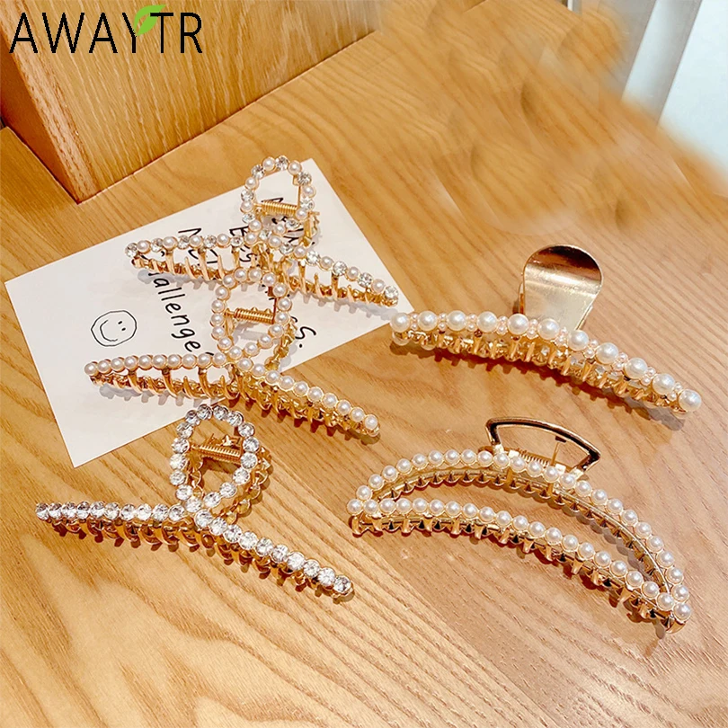 Заколка для волос женская, металлическая, с жемчугом и кристаллами