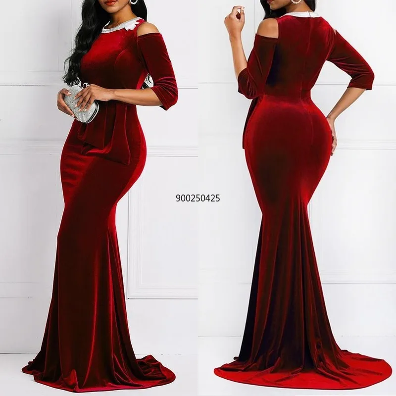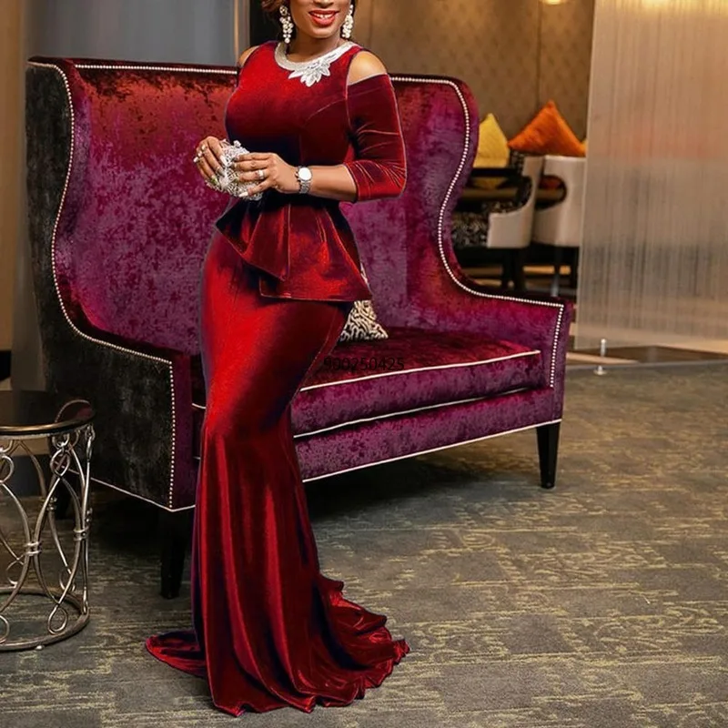 Женское бархатное платье с юбкой-годе, красное платье из Анкары, соблазнительное черное платье до пола, лето 2020