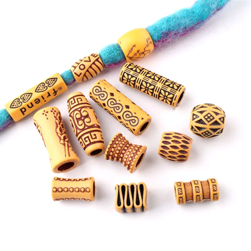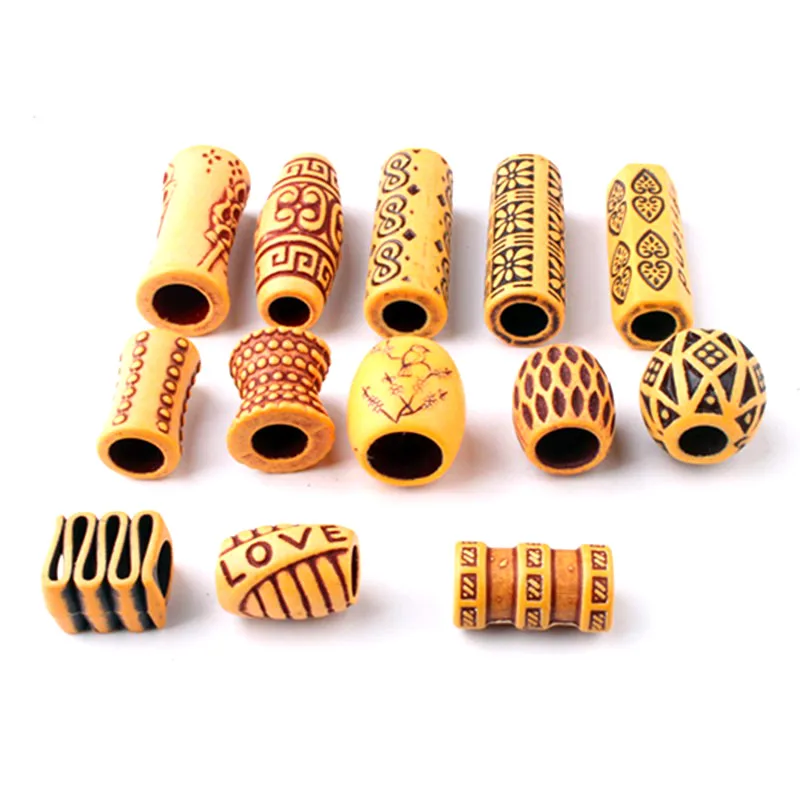 10 шт. Пластиковые Имитация дерева коса для волос Dread Dreadlock борода бусины кольца трубка Appro 8 мм Внутреннее отверстие ювелирные изделия 13 стиль