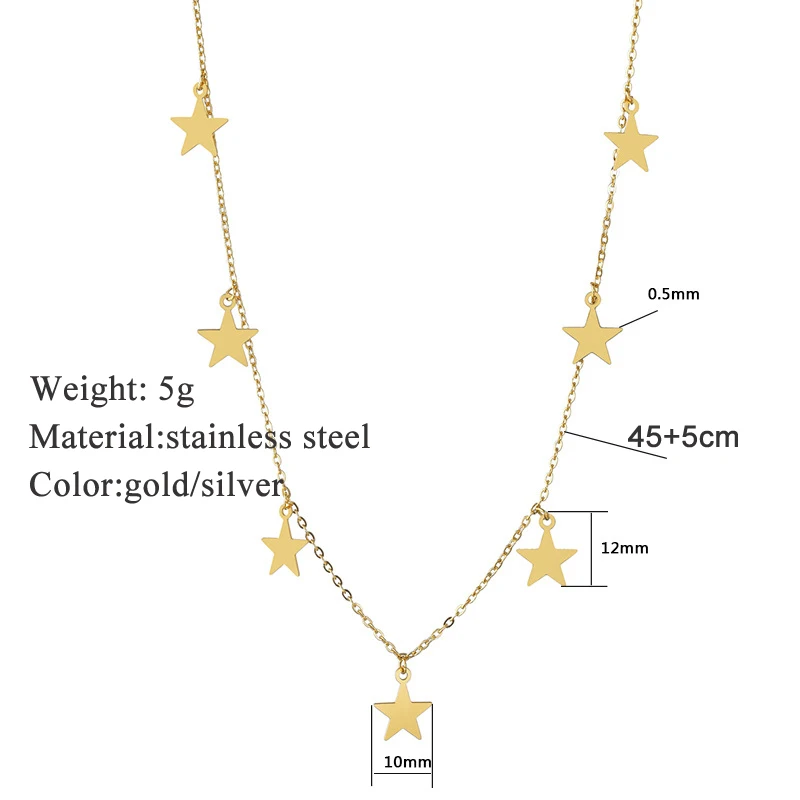 Ожерелье из нержавеющей стали со звездами для женщин, цепочка до кл...