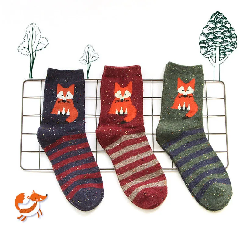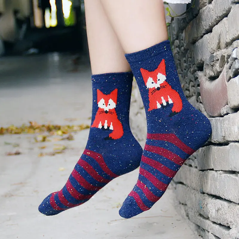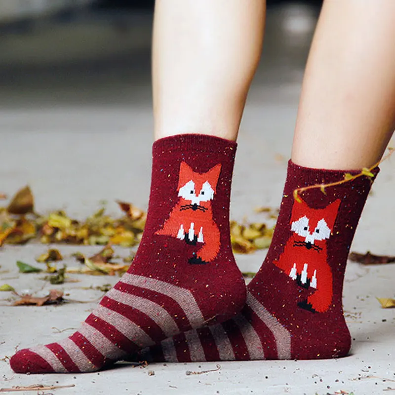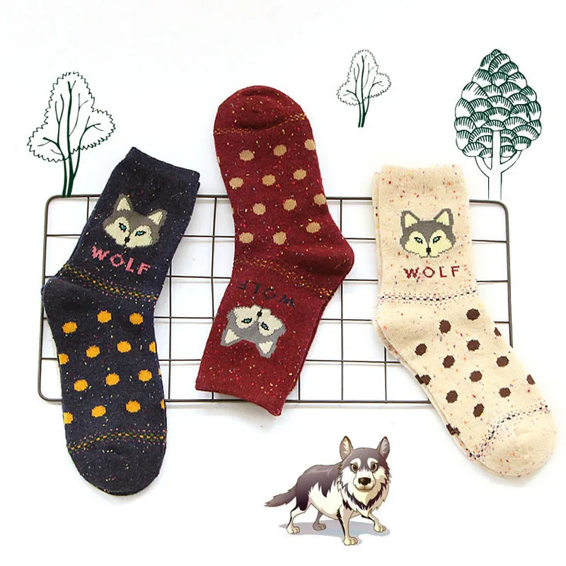 Женские хлопковые толстые шерстяные носки в Корейском стиле, брендовые милые рождественские носки в стиле Харадзюку С Изображением Животных, лисы, волка, полосатых носков